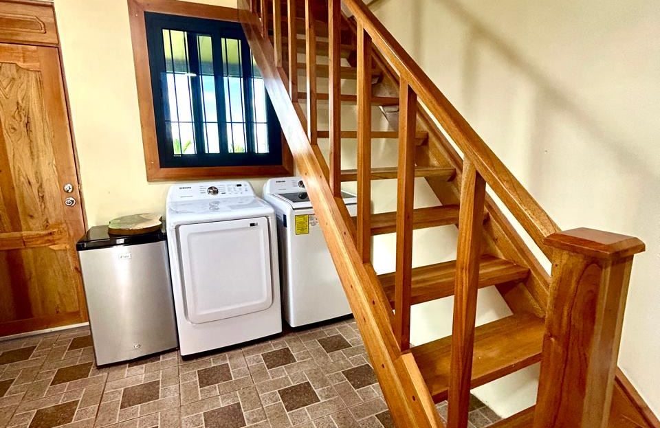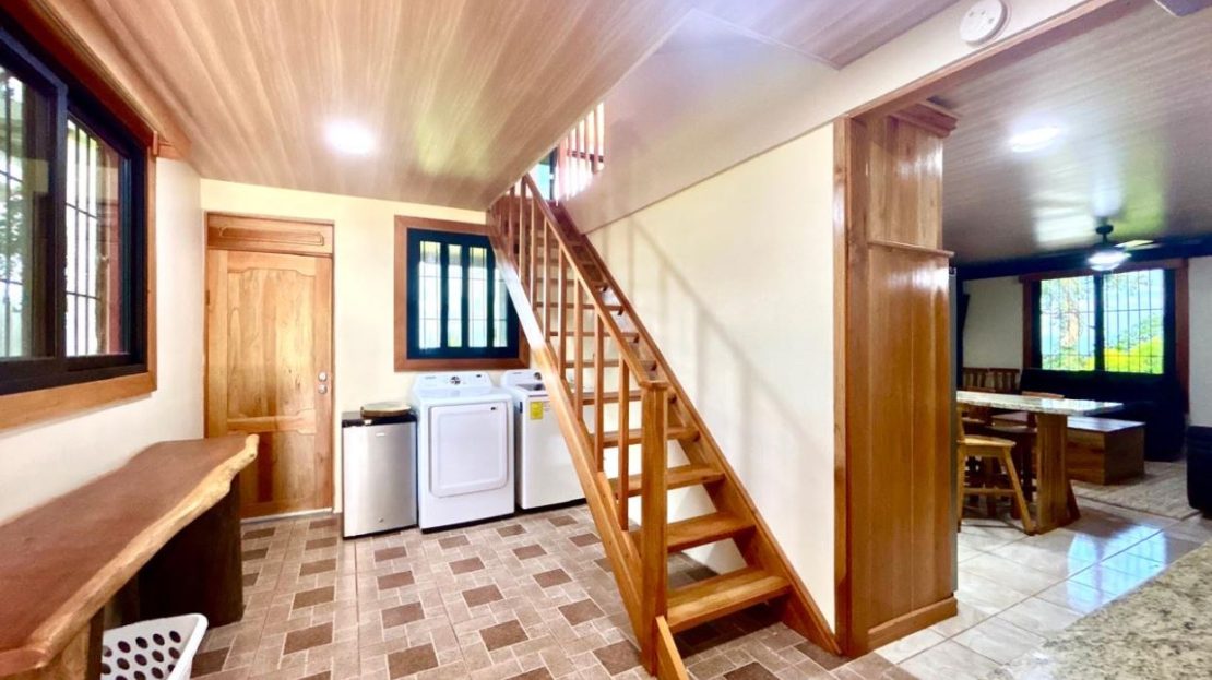 Asimismo, este nivel incluye una espaciosa área de lavandería con lavadora y secadora nuevas, amplio espacio de trabajo y almacenamiento, un baño completo con ducha y acceso directo a una terraza trasera techada, ideal para disfrutar de comidas al aire libre y momentos de relajación.