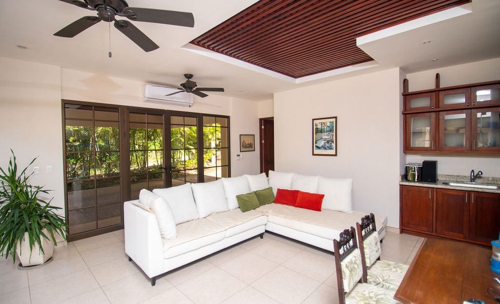 Ingrese a la casa principal y será recibido por puertas corredizas de vidrio de piso a techo que envuelven toda la casa, inundando el espacio con luz natural y ofreciendo impresionantes vistas de la vegetación circundante. El diseño crea un flujo continuo entre la vida interior y exterior, lo que hace que cada momento aquí se sienta como un retiro.