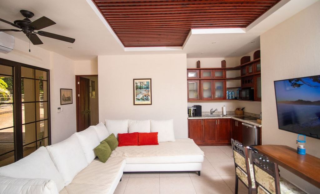 La casa de invitados de 2 dormitorios y 2 baños es perfecta para familias o visitantes o incluso como alquiler para generar ingresos. También está equipada con una pequeña cocina.La casa de invitados tipo estudio de 1 dormitorio y 1 baño ofrece aún más flexibilidad: es ideal para una oficina, un gimnasio o un retiro privado. Está equipada con una pequeña cocina, espacio de guardarropas, una ducha al aire libre y una sala de estar debajo de los árboles.