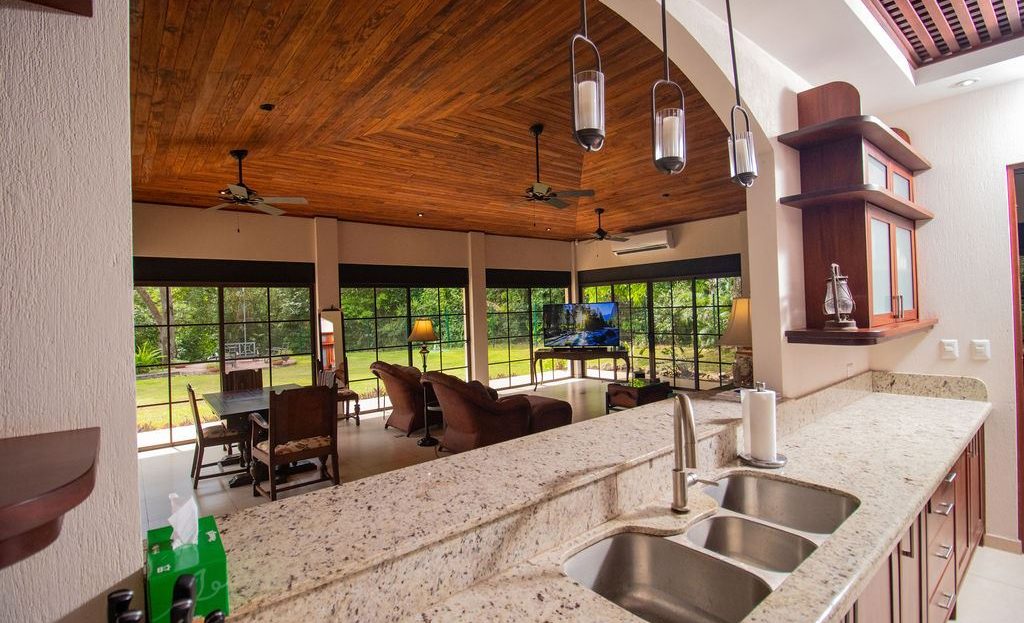 As you enter this fully turn-key stunning estate, nestled in a prestigious gated community just five minutes from downtown Atenas, you’re immediately surrounded by the beauty of five acres of lush, mature trees, including mangoes and citrus trees. A circular driveway leads you to this home which encompasses 5,980 sq. ft. This custom-designed home is where modern luxury meets tropical serenity.