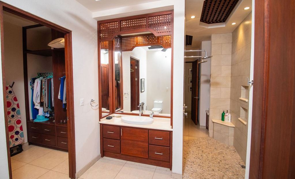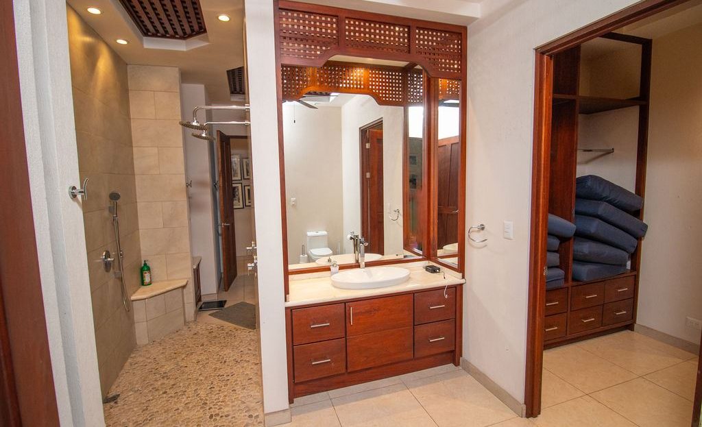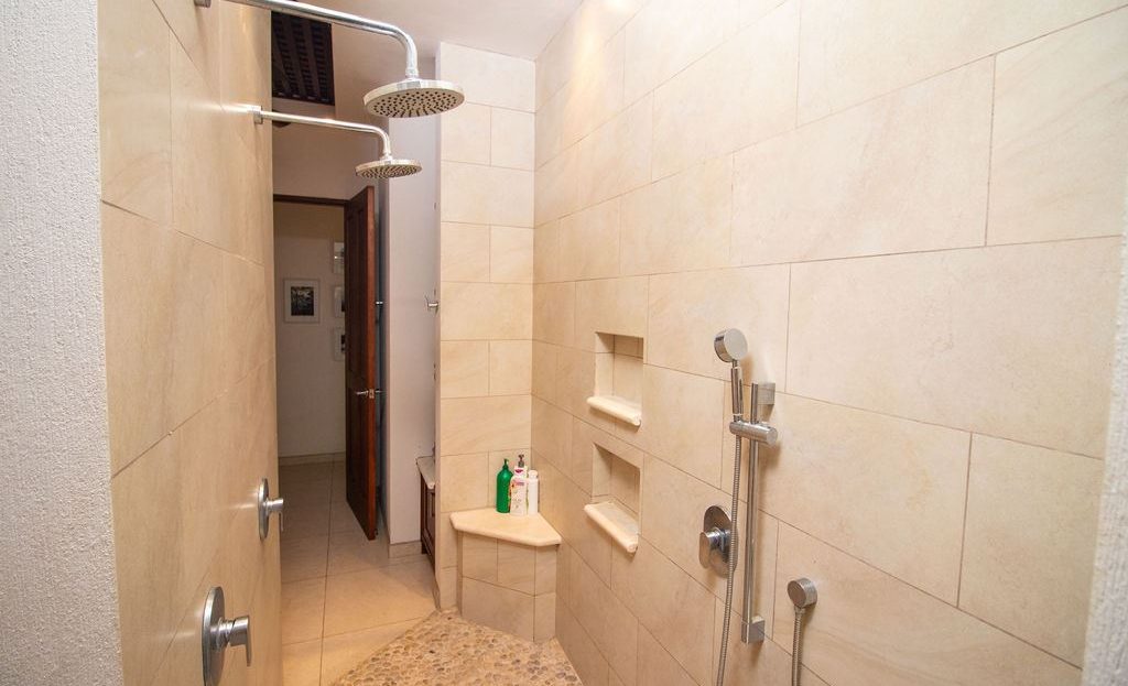Steps from the living room, you’ll step onto an expansive outdoor lounge area. The large swimming pool invites you in, while the outdoor shower and spacious entertainment areas make it the perfect setting for hosting or simply unwinding in paradise.