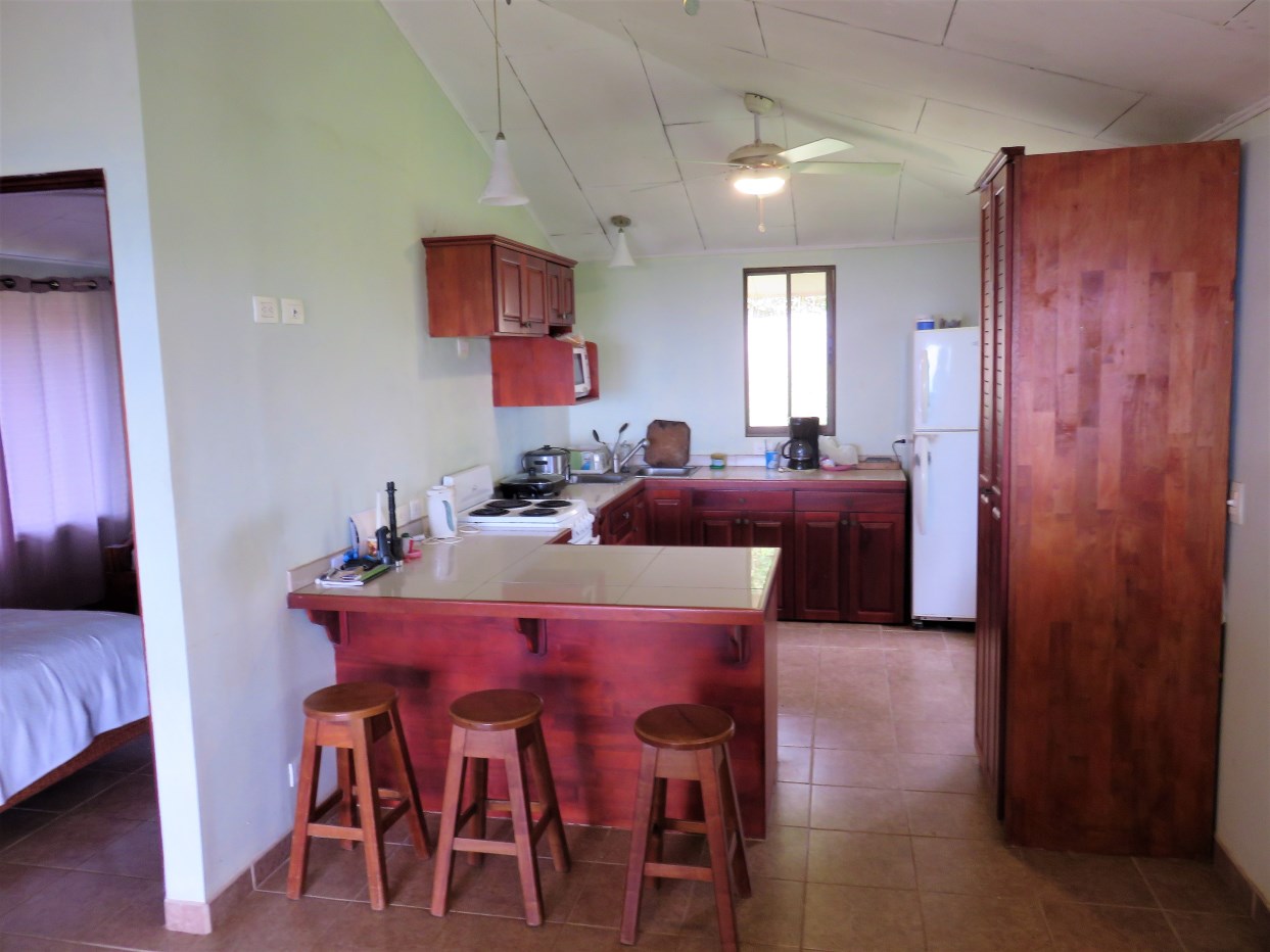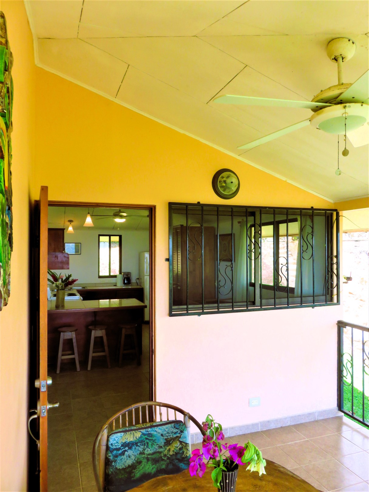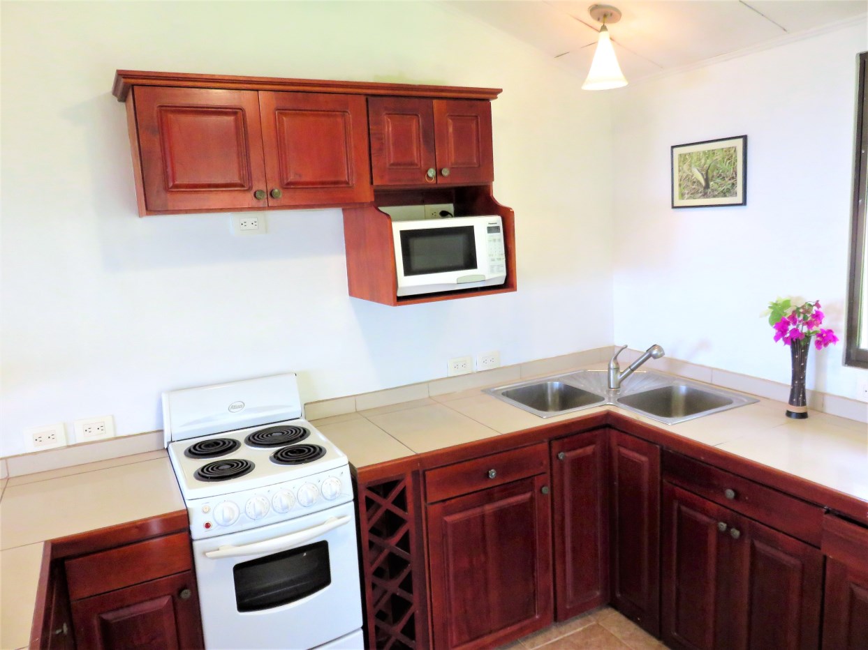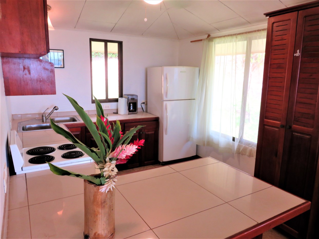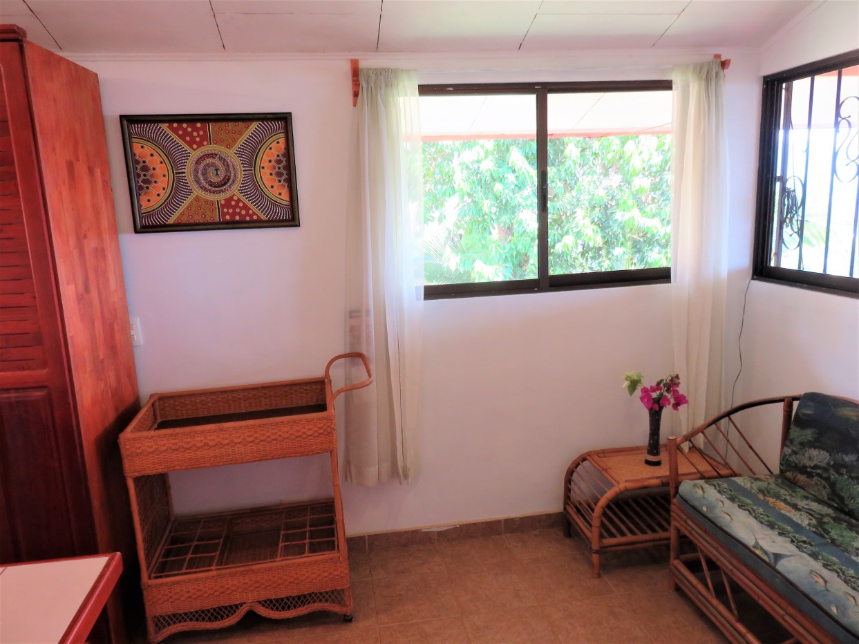 Casa Aracari is a 2 bedroom house with one of the most stunning views of the Pacific Ocean and rain forest in all of Ojochal. Situated at the top of a hill in a gated community , it is about 700 ft above sea level. Built on steel and concrete pillars, the living areas of the house are all on the second floor which allows you to look down on the birds flying and even into their nests. The sounds of nature totally surround you.The tiled outside patio overlooks Casa Aracari’s very large garden. From the patio, a front door leads you in to a living room and kitchen area. The kitchen has a built in breakfast bar with stools, a 4 burner electric stove/oven , a single door fridge/freezer and a microwave built into wooden wall shelving. To the left of the front door after entering there are 2 bedrooms and a bathroom. The Stunning View Bedroom with windows to the 200 degree Pacific view and rain forest valley literally directly below you; the full bathroom and the second bedroom which has room for a Queen bed and a single bed and has views of the virgin rain forest valley right below. Although originally built as a guest house, Casa Aracari was wired for possible expansion as it has a large ground floor area under the patio/living room that could be walled in and used as a third bedroom, an office or exercise room or laundry room. The laundry is currently done in the open area underneath the house which has a concrete floor and a laundry sized basin with hot and cold water.The house also has a fiber optic cable junction box less than 30 feet away so super high speed internet is available if needed. Otherwise internet can either come wirelessly from the ICE tower which is in direct sight 2 km away and has a 5 bar signal, or from Skyfiber, using a small dish.The gardens have everything from various flowers to mature banana, coconut and lemon trees. For the scarlet macaws that land within 30 ft of the balcony there are mature almond trees for them to feed on.There is also plenty of room to put in a swimming pool 20 feet away from the house & even room to dramatically expand the house or even build another house on the very large lot . Soil testing has been done to confirm the soil is good for building a pool and another house.Ojochal is renowned as the best culinary village in all of Costa Rica and the village has its own free-to-use library, soccer pitch and community hall where the farmers bring their fresh produce every week.The owners had planned to build a large outside patio all around the house plus a pool, but physical health issues have made them decide to sell.