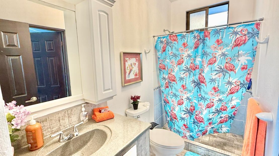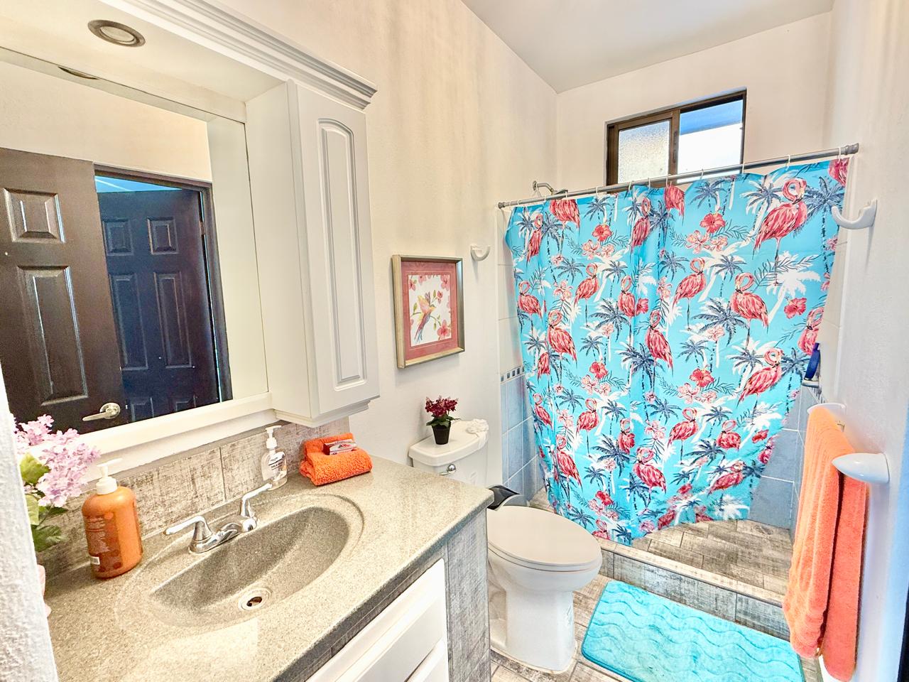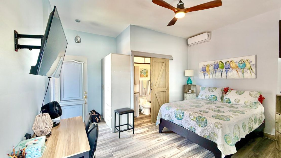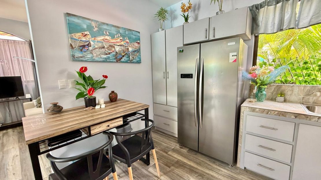 La casa del lado izquierdo ofrece 2 habitaciones y 2.5 baños, además de su propia piscina privada—el lugar perfecto para relajarse después de un día en las olas. Gracias a la puerta de conexión en el patio trasero, la casa del lado derecho también puede compartir acceso a la piscina, ideal para invitados o inquilinos.