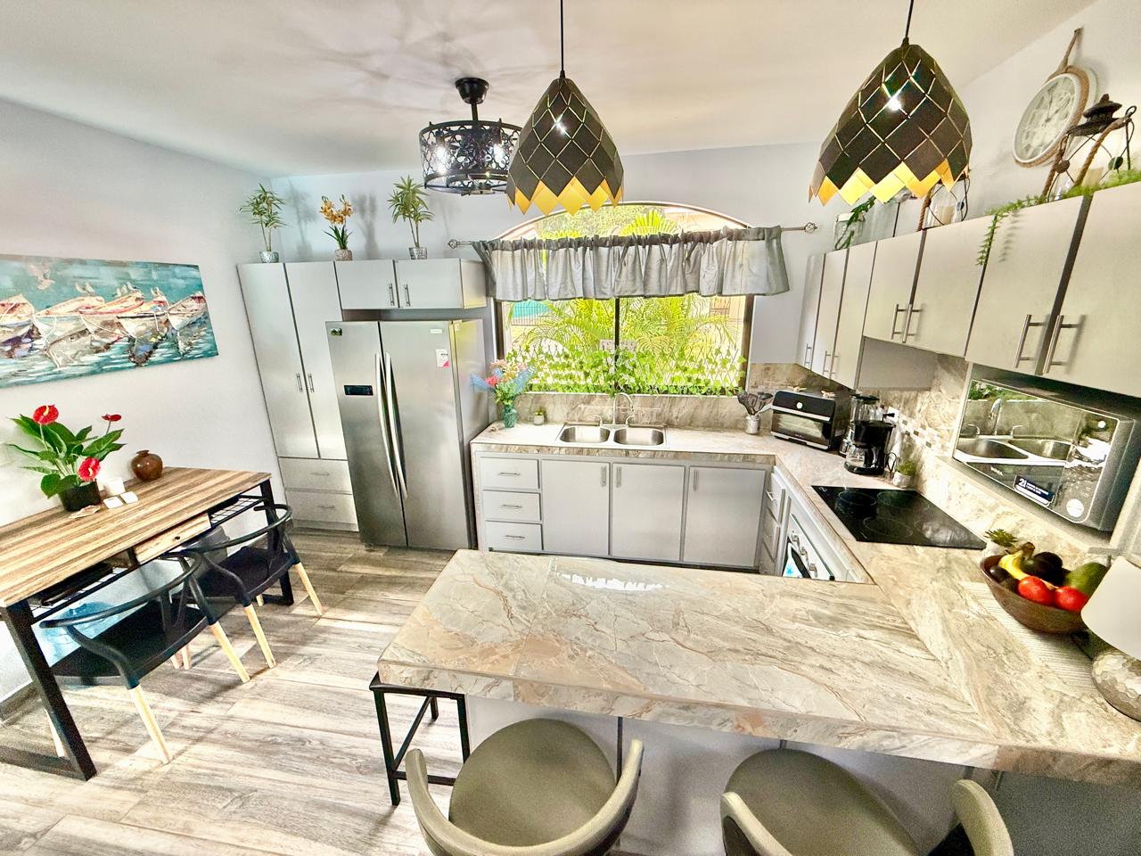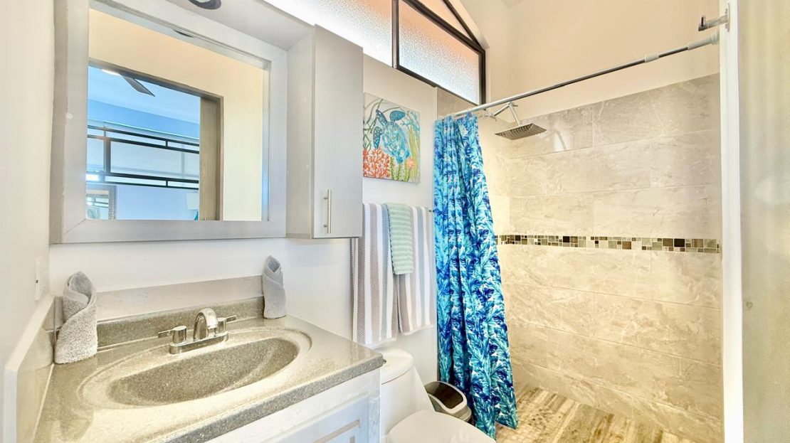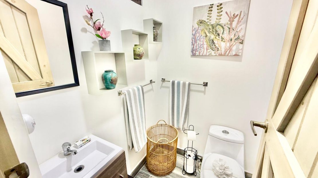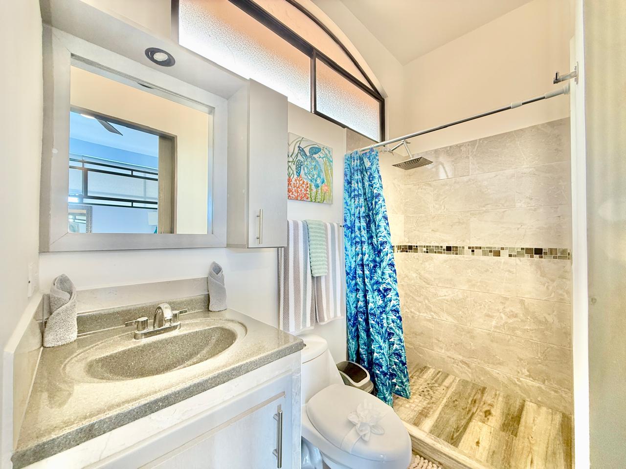 La casa del lado izquierdo ofrece 2 habitaciones y 2.5 baños, además de su propia piscina privada—el lugar perfecto para relajarse después de un día en las olas. Gracias a la puerta de conexión en el patio trasero, la casa del lado derecho también puede compartir acceso a la piscina, ideal para invitados o inquilinos.