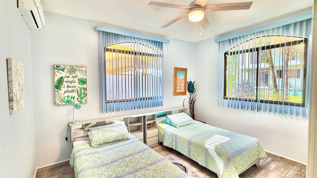 La casa del lado derecho cuenta con 2 habitaciones, 2 baños, su propia lavandería y parqueo techado, igual que la casa izquierda. Ambas casas incluyen aires acondicionados nuevos, techos nuevos, duchas exteriores, un tanque de agua adicional y un ambiente pet-friendly. La comunidad también ofrece una cuota mensual de HOA muy baja y una piscina compartida adicional, brindando más comodidades sin altos costos.