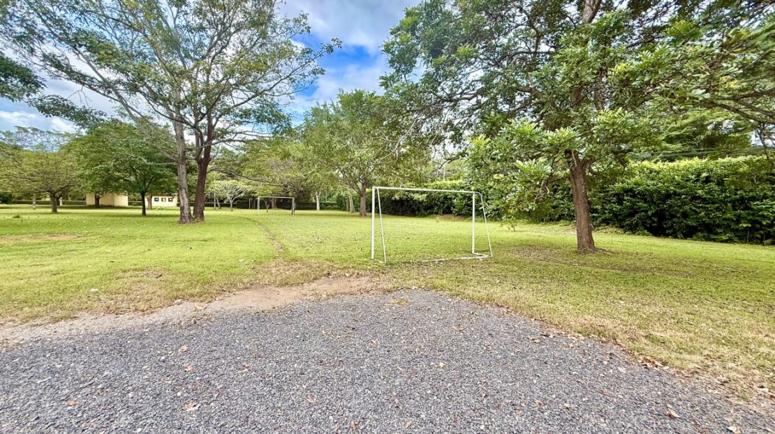 Piscina compartida y amplio patio con cancha de fútbol