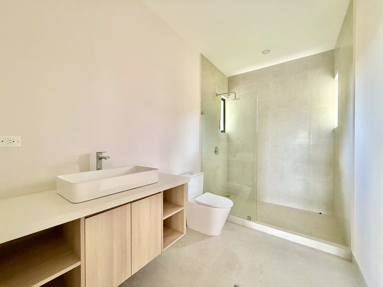 Cada casa cuenta con 2 habitaciones y 2 baños, una cómoda terraza, cocina con despensa, cuarto de lavado y cochera para 2 vehículos. Las casas se entregan sin amueblar, pero cada una incluye cocina y refrigerador. En el exterior, ambas disfrutan de una piscina compartida y un amplio patio con cancha de fútbol, ideal para familias con niños.