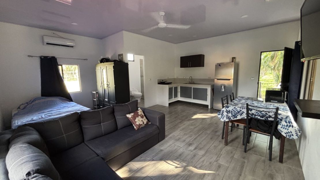 ¡A solo 5 minutos de la playa, esta propiedad lista para habitar se encuentra en un vecindario seguro y tranquilo, con amplio terreno y árboles frutales exuberantes, incluyendo aguacates! Cuenta con dos unidades: un apartamento de 3 habitaciones y 1 baño en la planta baja y un estudio en la planta alta, ideal para vivir en una y rentar la otra. Con espacio para una piscina y más terreno para aprovechar, esta casa totalmente amueblada está lista para disfrutar tal como está o para personalizarla a tu gusto.