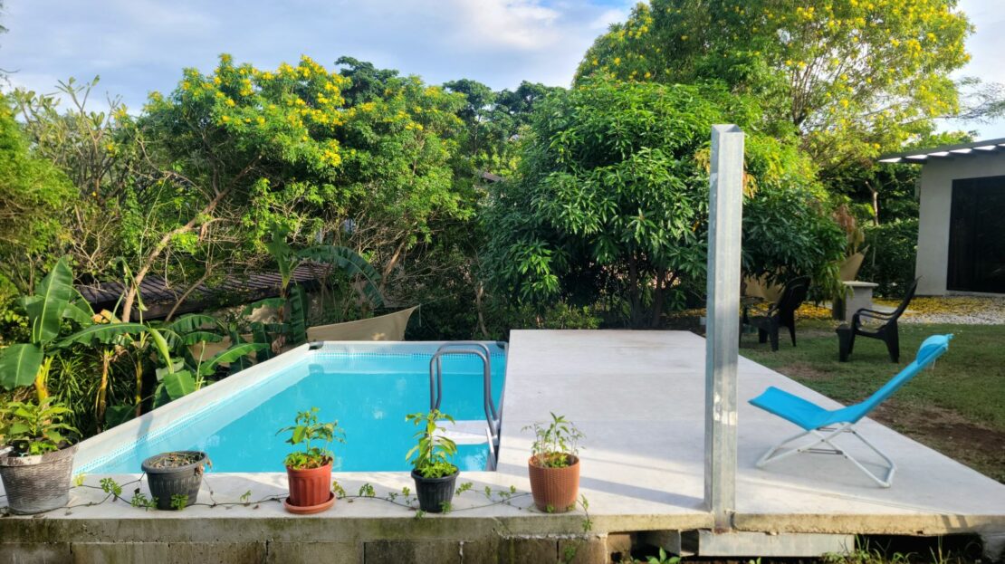 Welcome to Altos de Cacique. With his paved streets, this high end neighborhood is located on the top a mountain near Coco and Hermosa beaches. Sitting at the end of a dead end street with very low trafic, this cute 2 bedroom house has everything you need to have privacy in a condo bracket price! It even has a new construction (2024) that includes a garage and a fully furnished apartment with 1 bedroom, 1 bathroom and a full kitchen with 2 patio doors for lots of light. This construction is ready to receive 2 other floors with oceanview. There is an above ground pool installed. Literally surrounded by million dollar houses with security guards, this neighborhood has NO HOA! With the cool breeze of the sea refreshing, the solar panel and batteries, you won’t need to use a lot of electricity for cooling. Lots of colorful parrots, monkeys and fruit trees like mango, avocado, banana, rambutan, cocoa, lemon, grapefruit and sugar cane are boarding the property! Very low municipality taxes (260$/year). Don’t miss this unique opportunity!