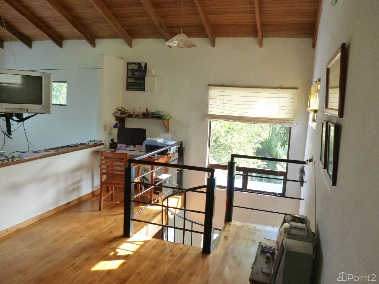 Uniquely designed and furnished 2 bedroom home on a large property in an exclusive Atenas community just 5 minutes from the center of town. This home features a large outside patio area with inviting hot tub. This property is enclosed in a nicely landscaped lot. The home features nice finishes and a loft type main bedroom on the second floor.