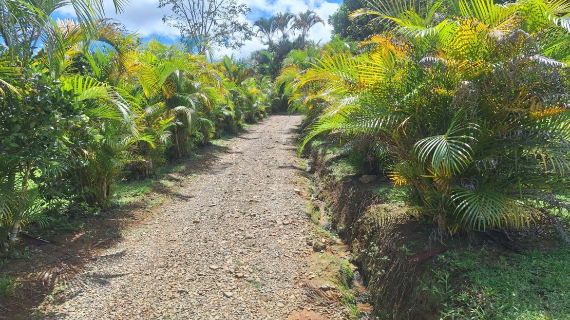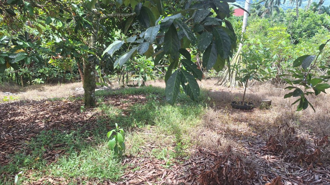 Zona verde extensa con árboles frutales y maderables: perfecta para disfrutar de la naturaleza y cultivar tus propios alimentos.