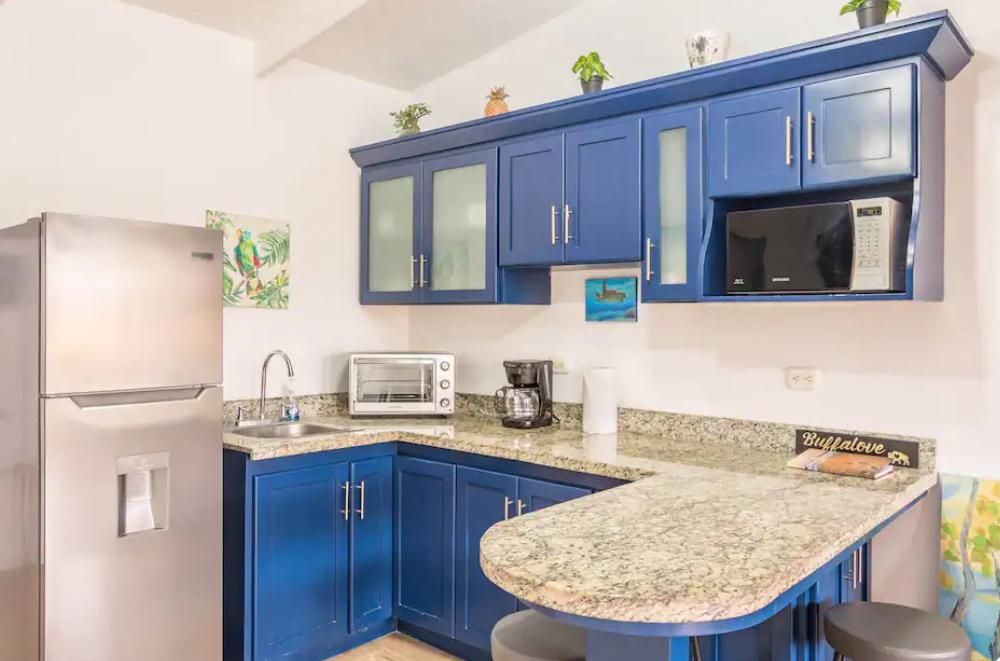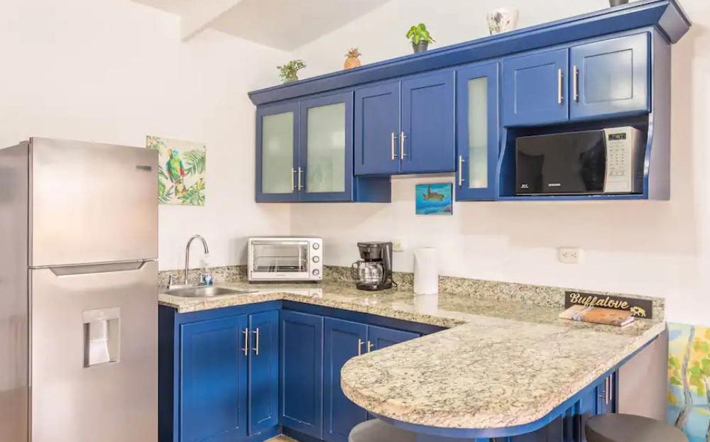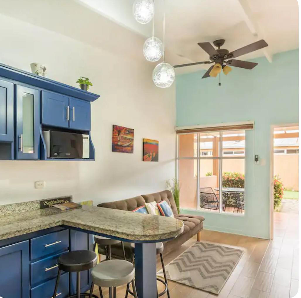 The villa is fully furnished and equipped with essential appliances, offering a ready-to-enjoy space. The open-concept living area connects smoothly to a cozy kitchen and a private patio surrounded by tropical gardens, perfect for relaxing or hosting. The Master bedroom has a queen bed and there is a twin over full in the second bedroom. The laundry room/storage area is lockable for owner use only if desired.