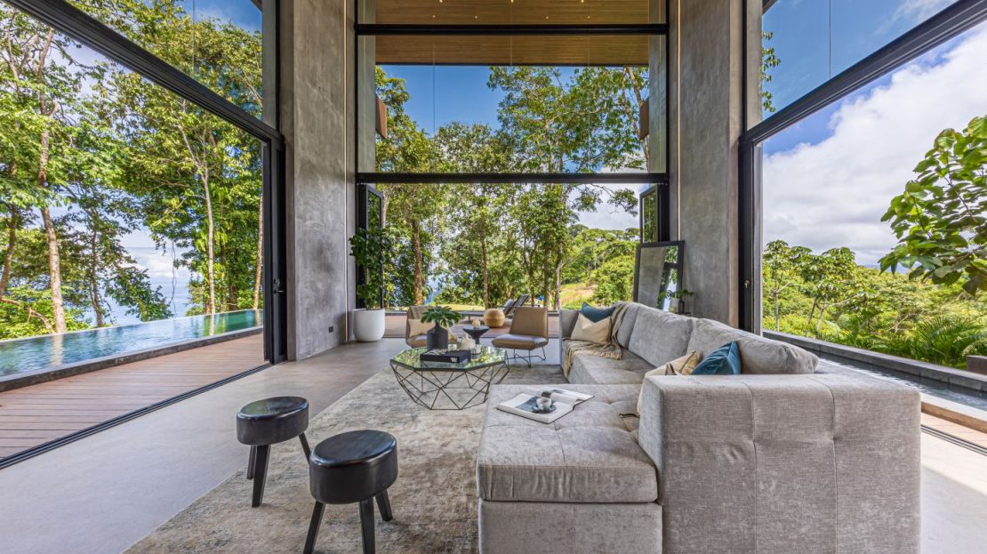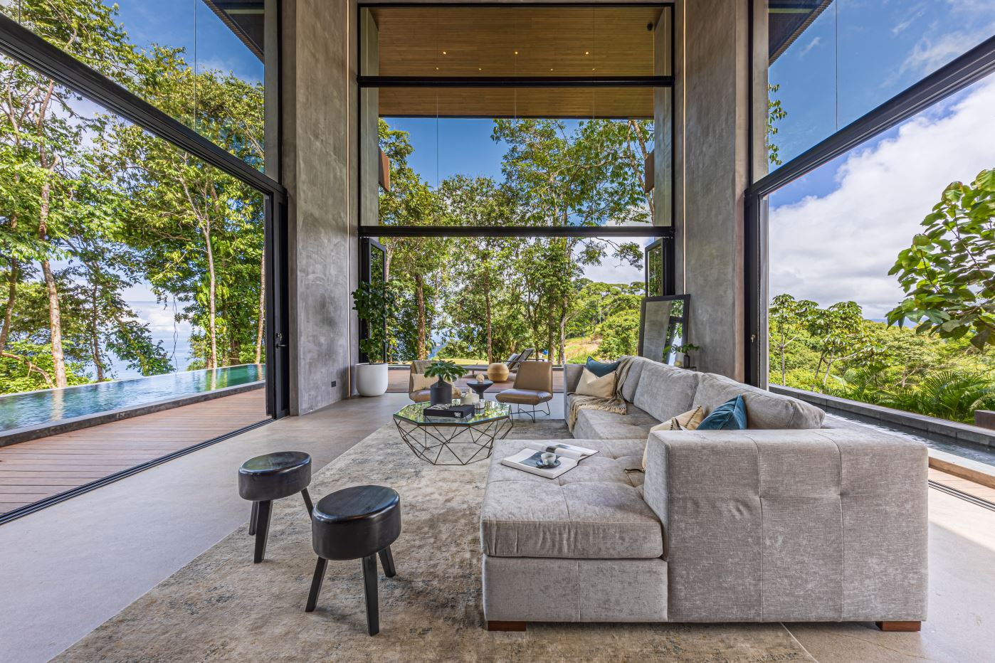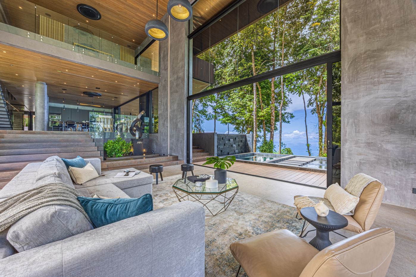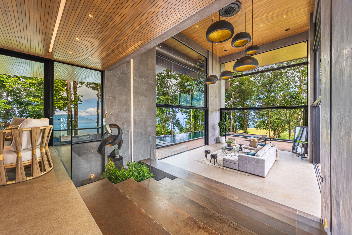 Designed by renowned architect Eric Bogantes, this villa celebrates space, light, and harmony with its surroundings. Floor-to-ceiling windows frame spectacular views of the Pacific Ocean and jungle, while inviting natural light and refreshing breezes throughout.