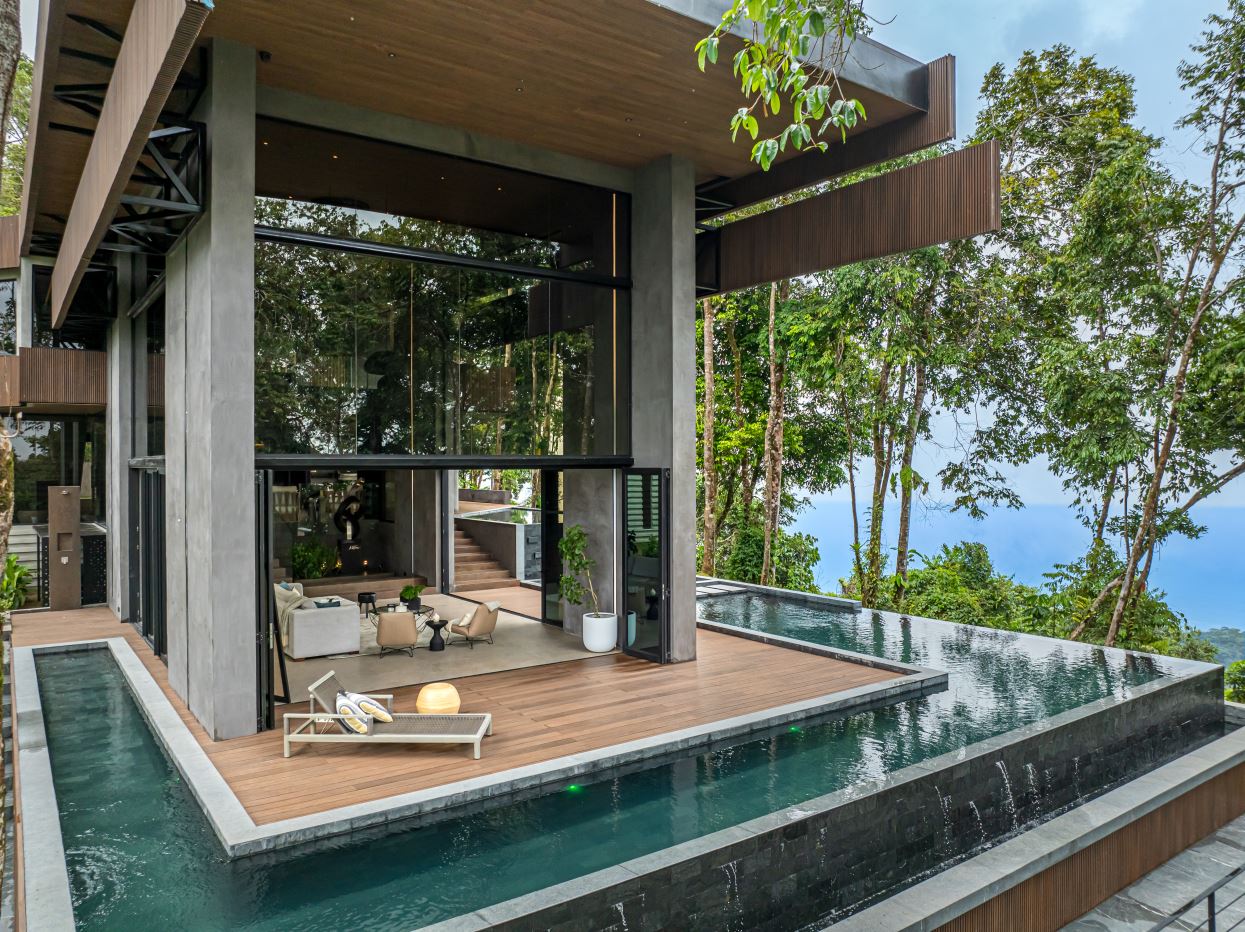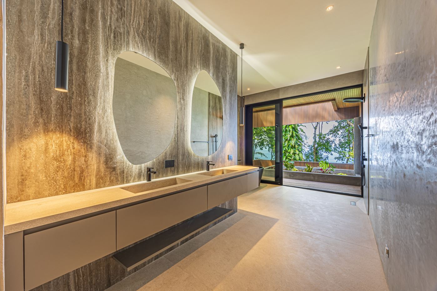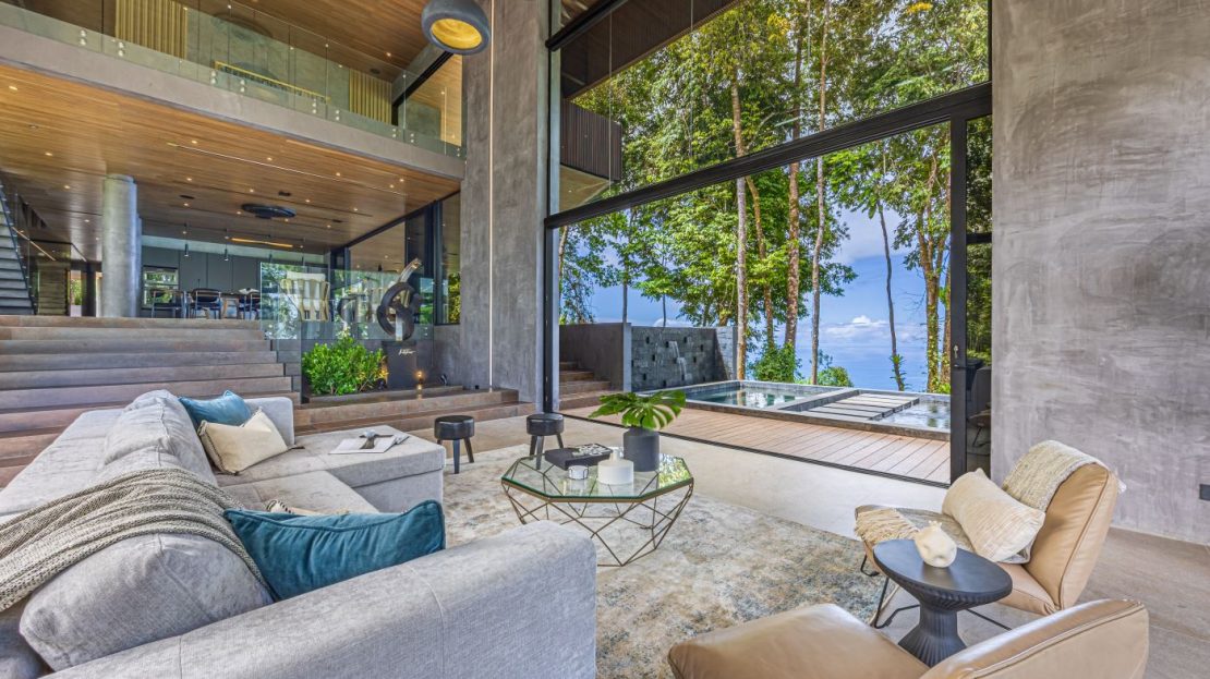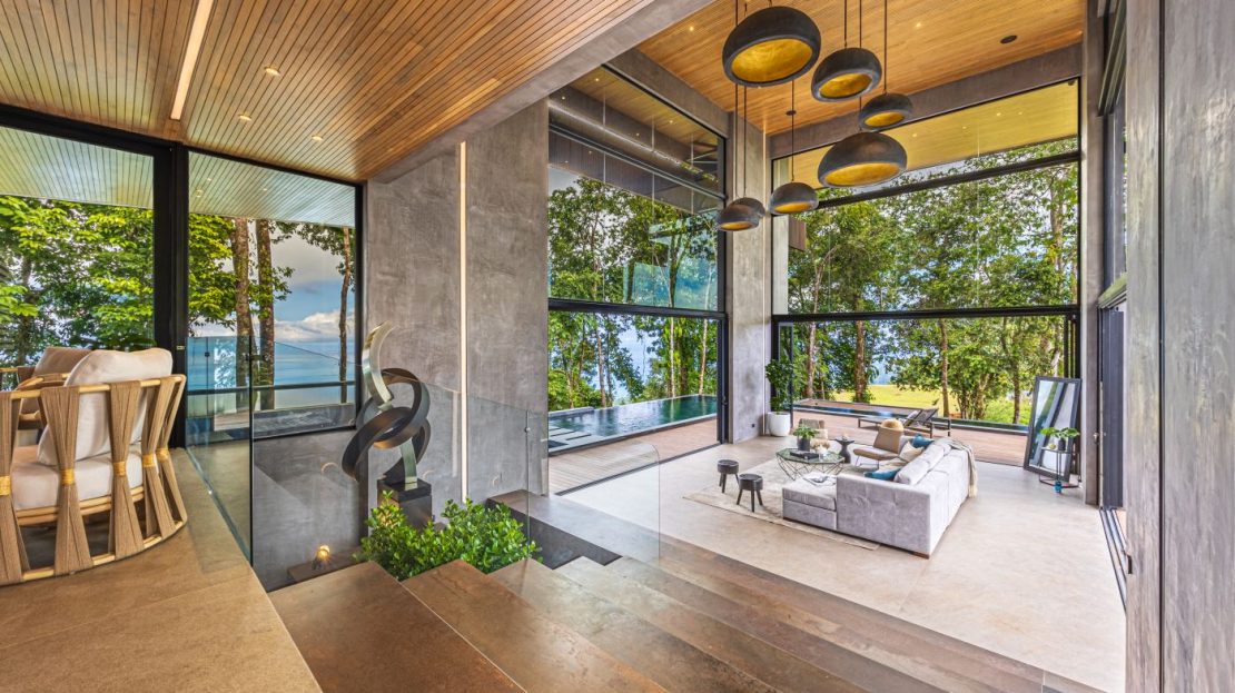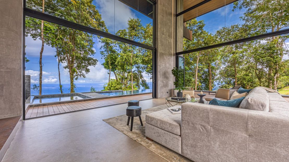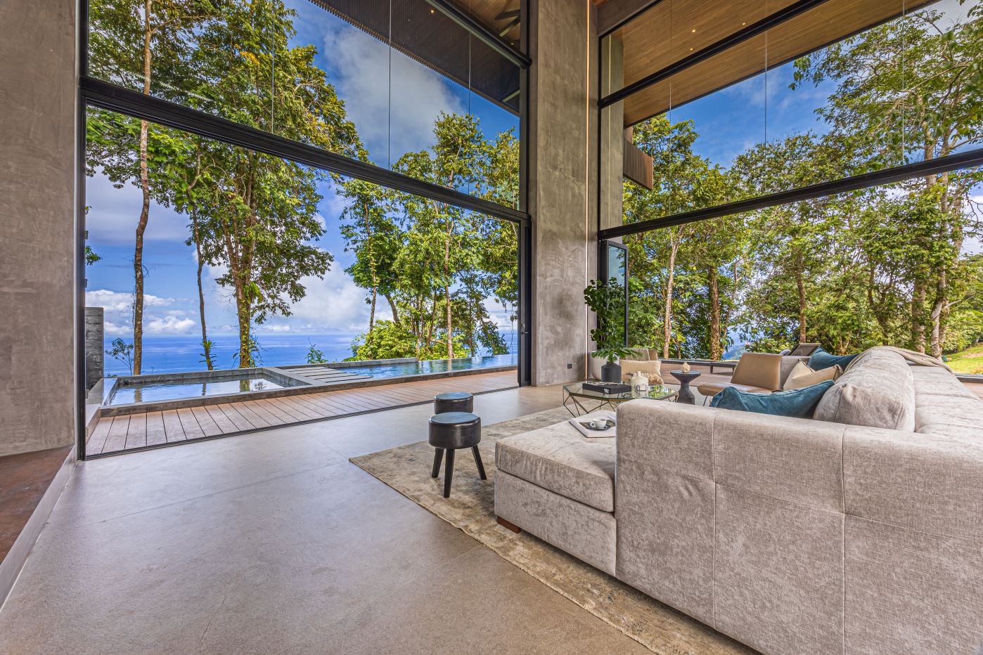 Designed by renowned architect Eric Bogantes, this villa celebrates space, light, and harmony with its surroundings. Floor-to-ceiling windows frame spectacular views of the Pacific Ocean and jungle, while inviting natural light and refreshing breezes throughout.