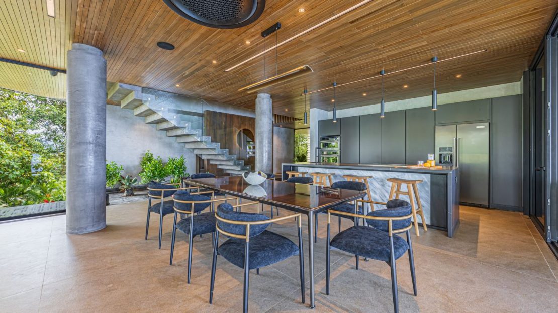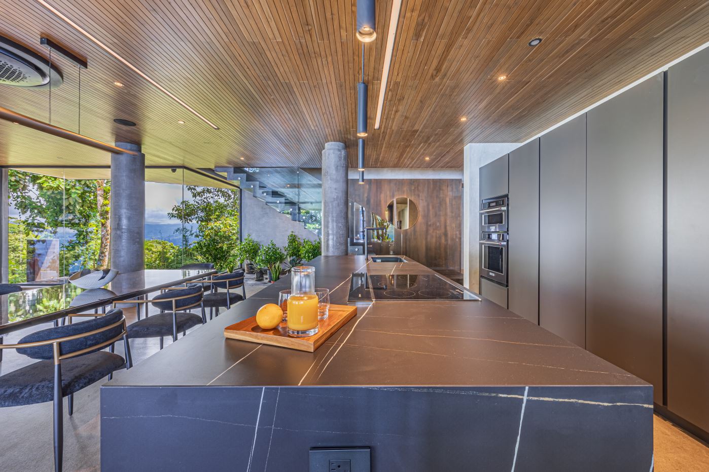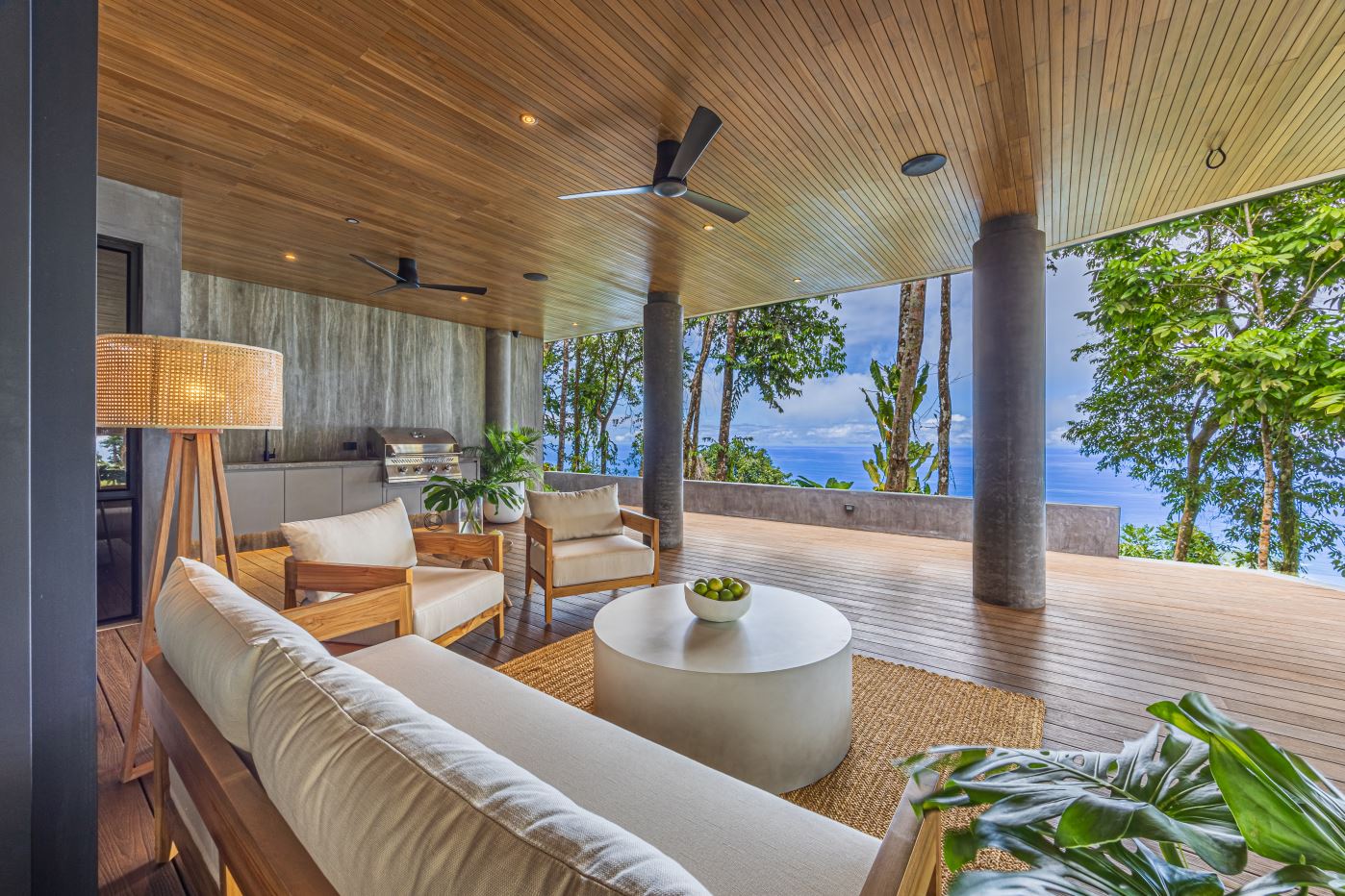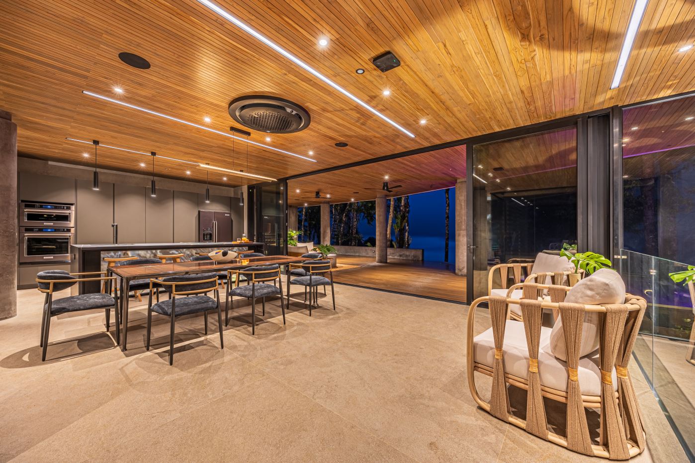 Designed by renowned architect Eric Bogantes, this villa celebrates space, light, and harmony with its surroundings. Floor-to-ceiling windows frame spectacular views of the Pacific Ocean and jungle, while inviting natural light and refreshing breezes throughout.