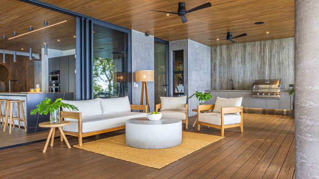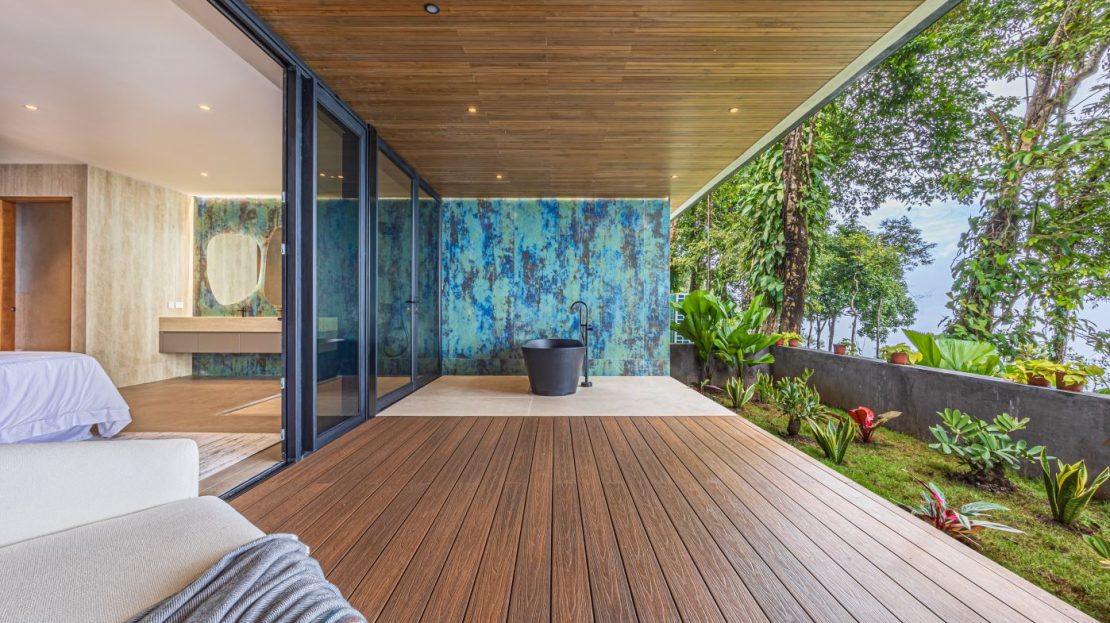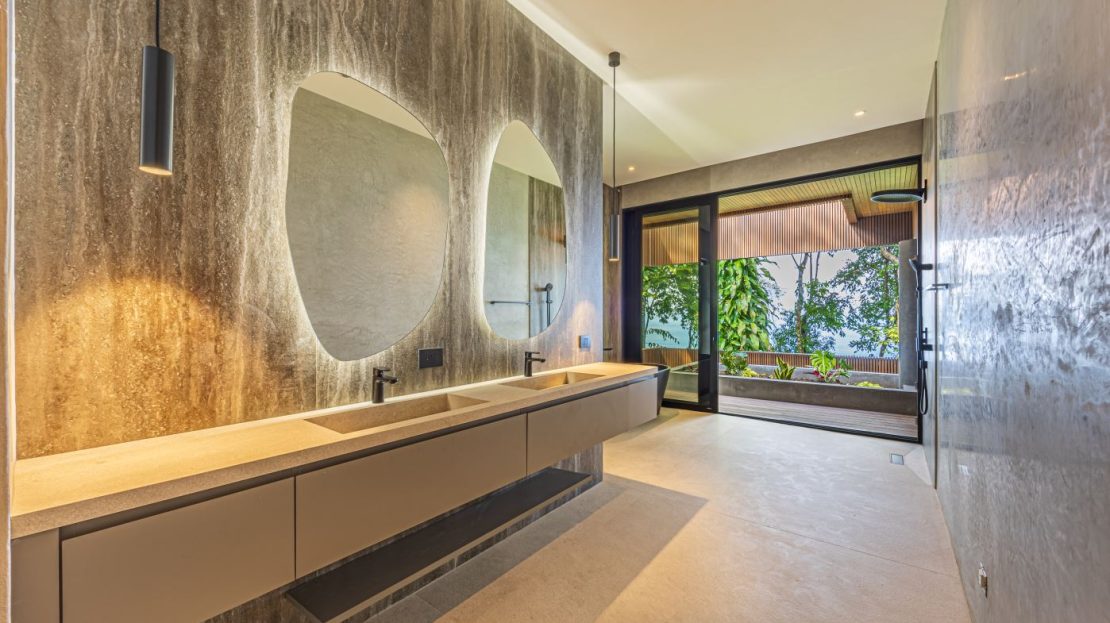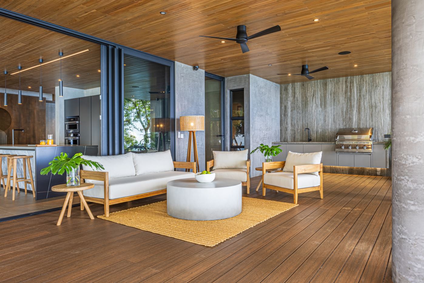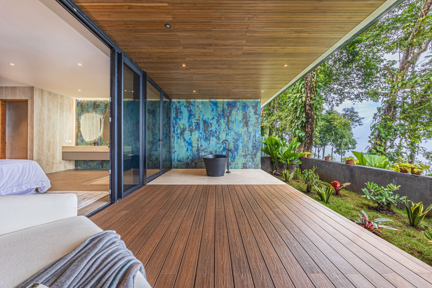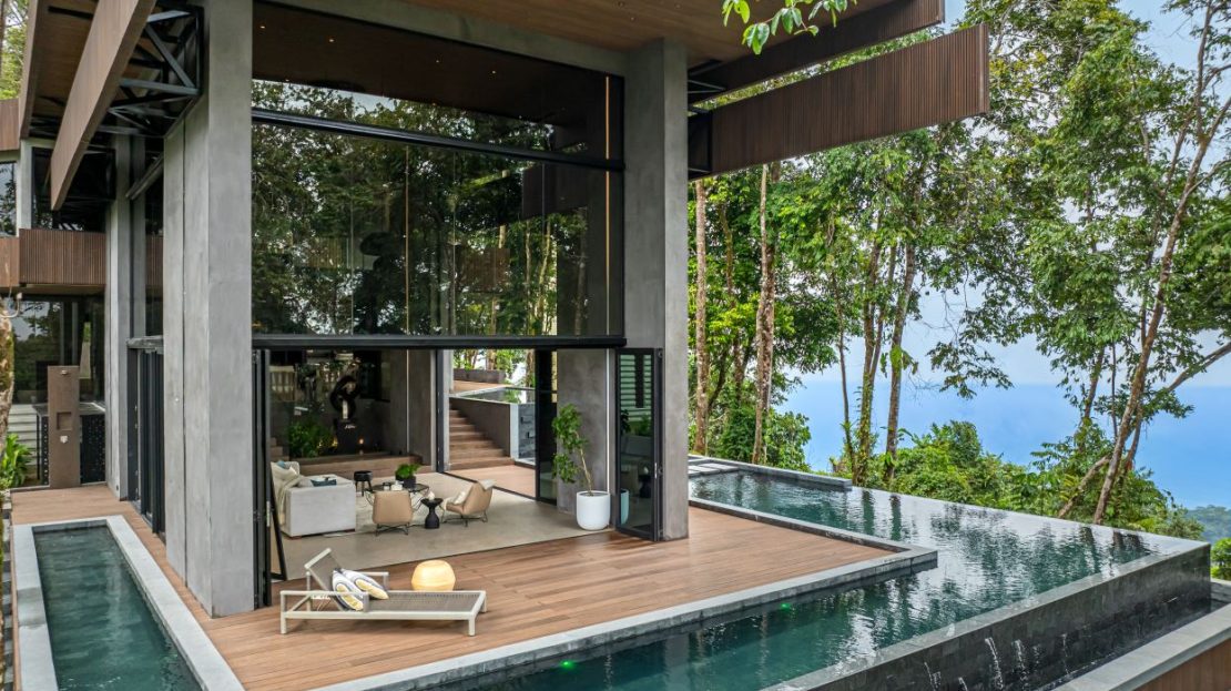 Designed by renowned architect Eric Bogantes, this villa celebrates space, light, and harmony with its surroundings. Floor-to-ceiling windows frame spectacular views of the Pacific Ocean and jungle, while inviting natural light and refreshing breezes throughout.