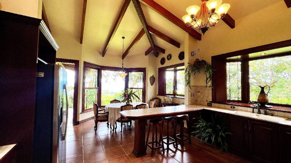 The kitchen is a dream for any culinary enthusiast, featuring large windows to enjoy the fresh air, fine cedar wood cabinetry, a spacious pantry and breakfast bar, as well as a breakfast nook that becomes another space to enjoy special moments with family and friends.