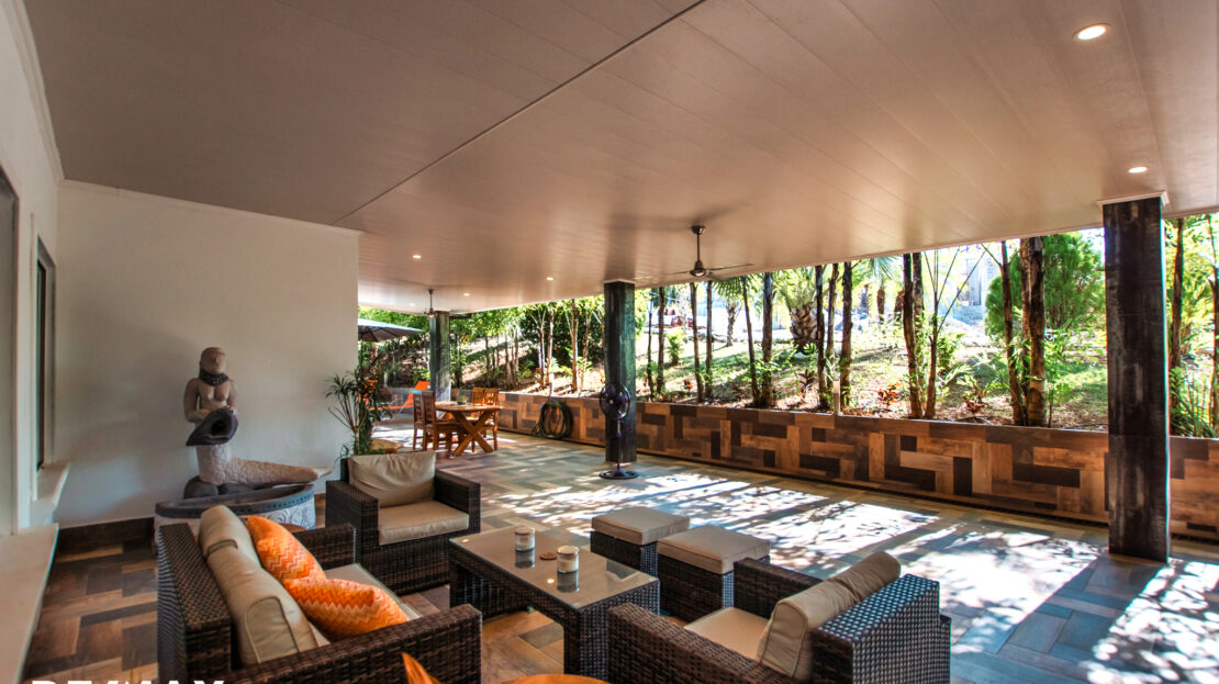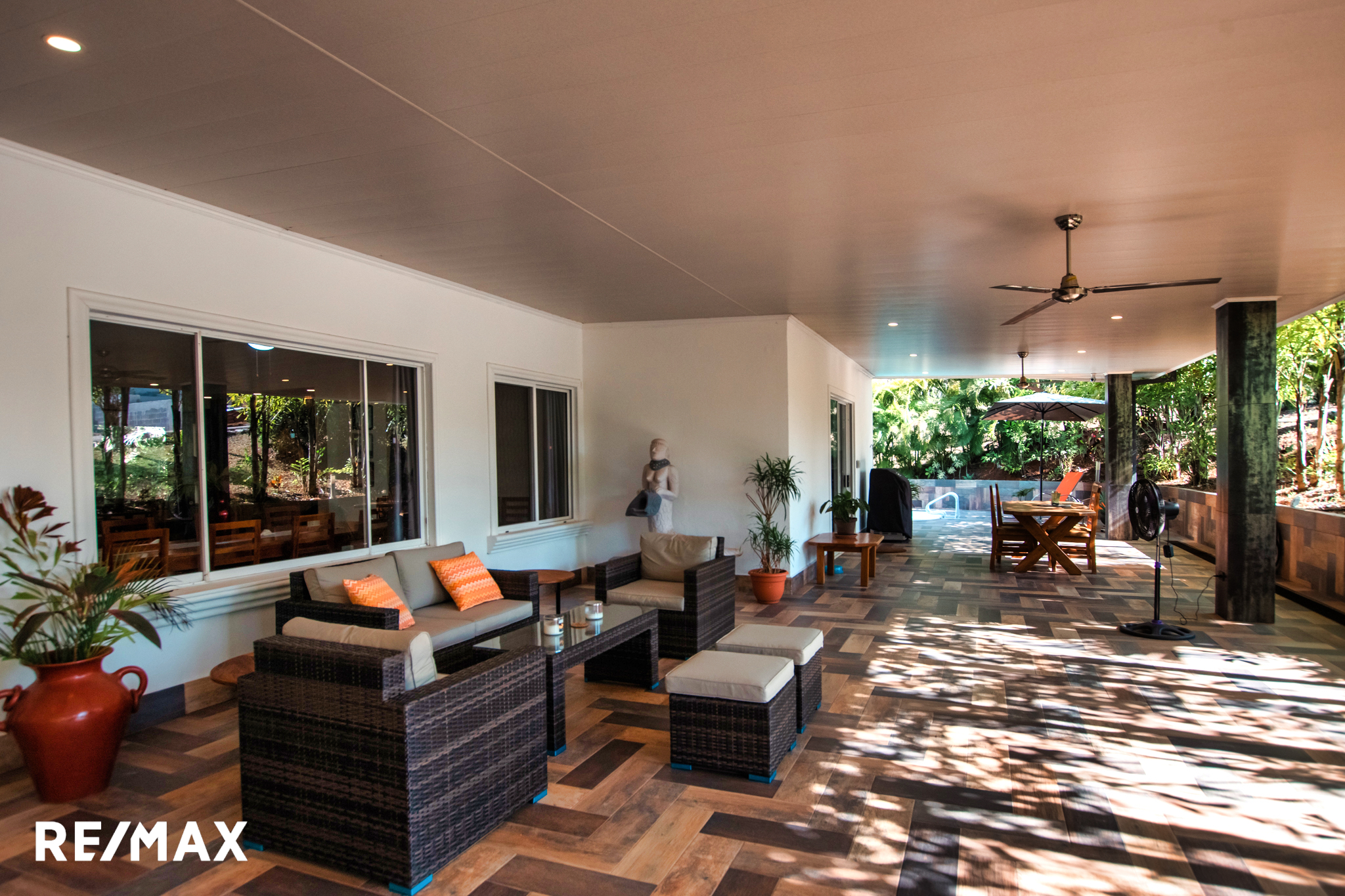 As you step outside, you’ll find a quiet haven. On sunny days, a dazzling private pool beckons, providing a cool respite from the tropical heat. The outdoor area is the ideal setting for enjoyable family gatherings or laid-back days because of the lovely landscaping and swaying palm trees surrounding it. The home, which is situated on a sizable lot measuring 1199.16 square meters, has plenty of room for outdoor enjoyment and growth potential. The level ground guarantees low upkeep and offers a blank canvas for countless outdoor living options.