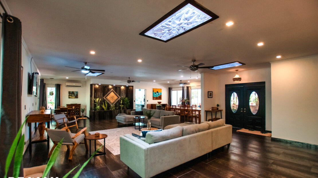 Located within the safe confines of the esteemed Loma Verde de Carrillo condominium, just a 5-minute drive from the pristine beaches of Playa Carrillo and 12 minutes from the picturesque shores of Playa Camaronal and Playa Samara, is an exquisite house worthy of the greatest respect. Welcome to “Villa de Palmas,” a luxurious haven of peace and tranquility where each element has been carefully designed to provide an unmatched quality of life. Welcome to “Villa de Palmas,” a luxurious haven of peace and quiet where each element has been painstakingly designed to provide an unmatched quality of life. The property is enveloped in palm trees, which give it its unique name and a tranquil feel. These trees gently sway as you approach.