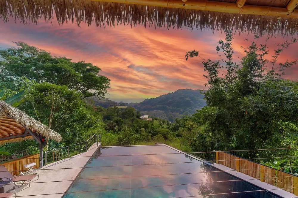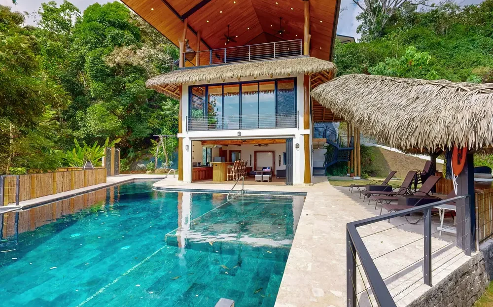 Villa Flor de La Vida (Villa Flower of Life) is an otherworldly tropical villa near the coastal town of Dominical, Costa Rica. Nestled within the secure and gated community of Vista Dominical Estates, this luxury ocean-view home is a sanctuary of elegance and tranquility. Boasting 4 bedrooms and 3.5 baths, this residence offers an extraordinary living experience with captivating features on each floor.