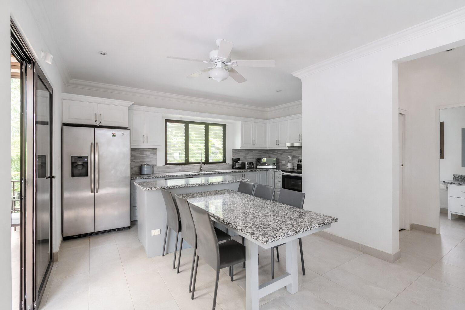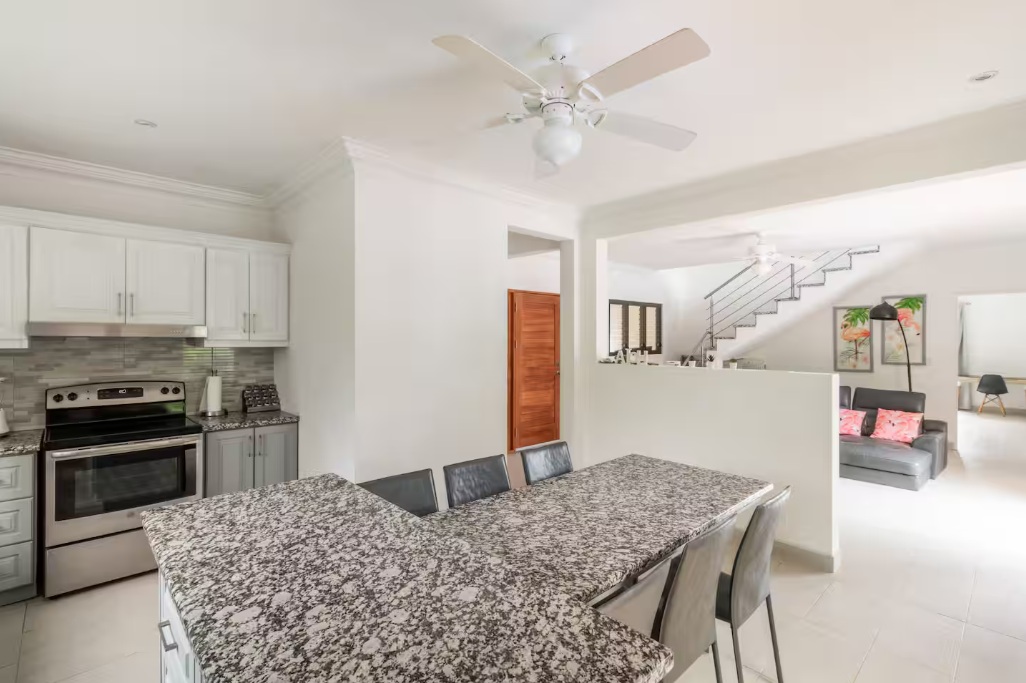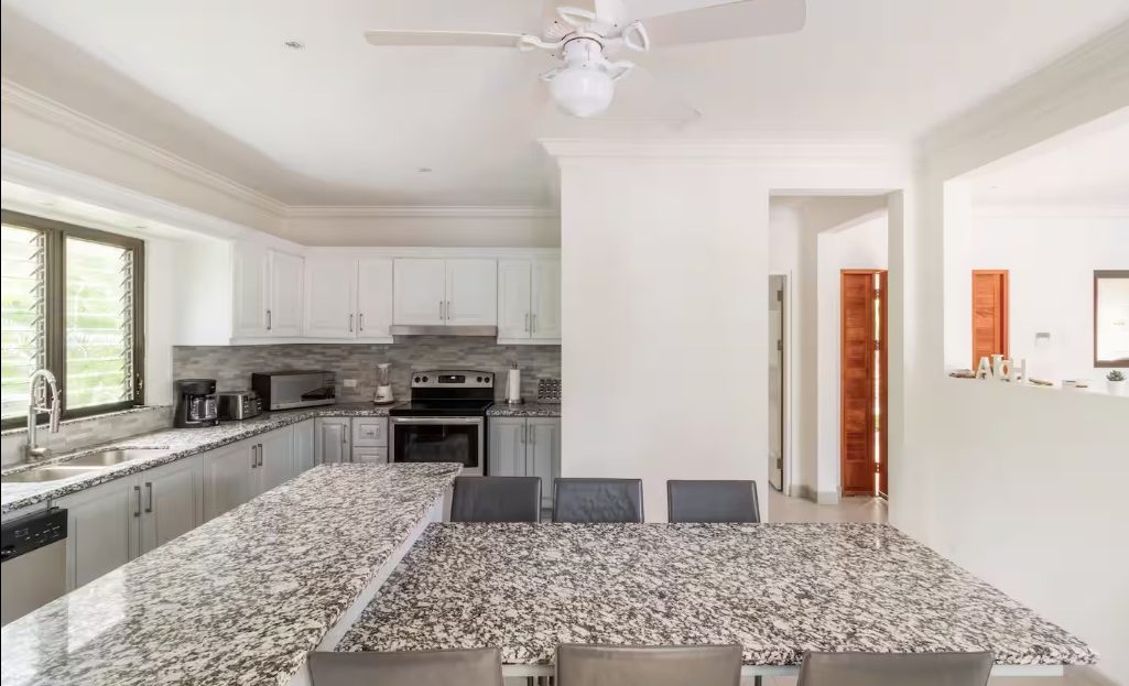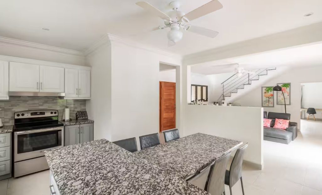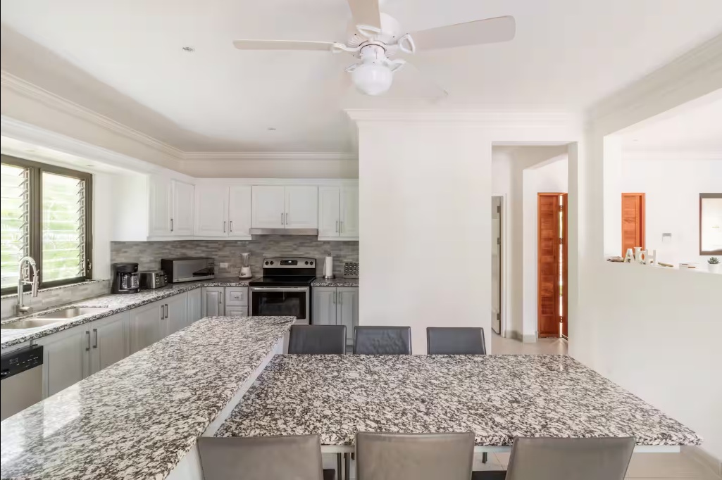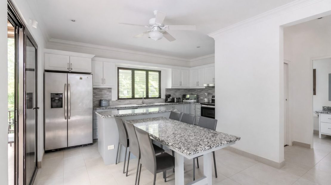 Designed for comfort and tropical elegance, the villa features three spacious bedrooms, each with its own private ensuite bathroom and air conditioning, ensuring maximum comfort for owners and guests alike. A fourth sleeping option is available with a comfortable sofa bed, providing additional flexibility. The fully equipped kitchen is ideal for entertaining, whether preparing casual family meals or hosting sunset dinners with friends. The expansive ocean-view terrace includes a BBQ area, creating the perfect setting for outdoor dining while enjoying fresh sea breezes and the soothing sound of the waves below.