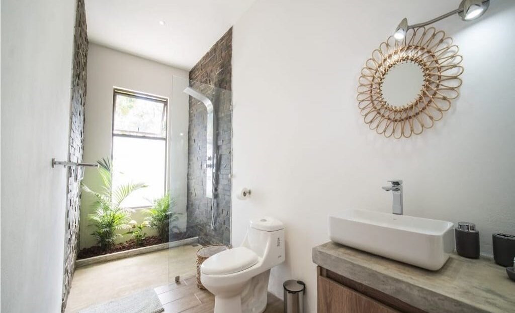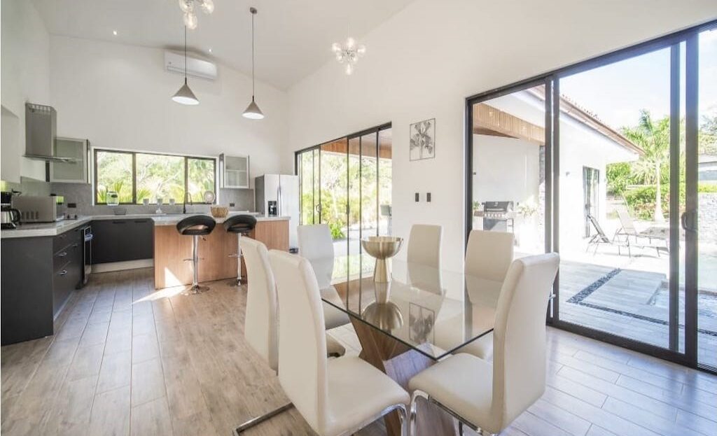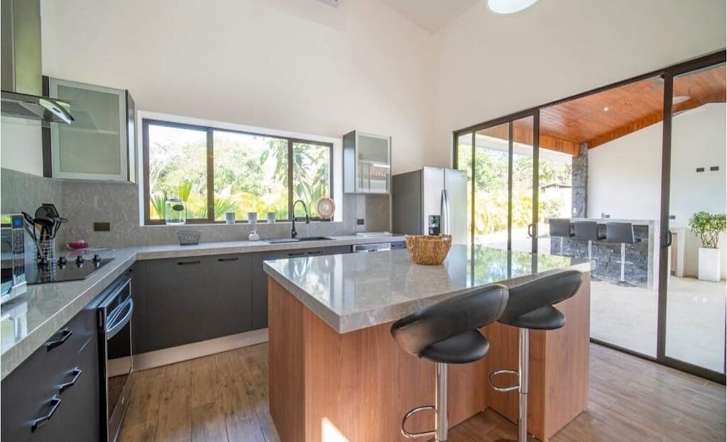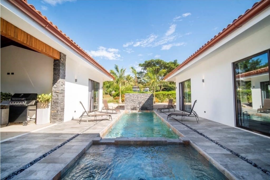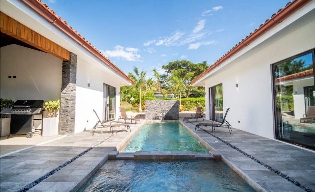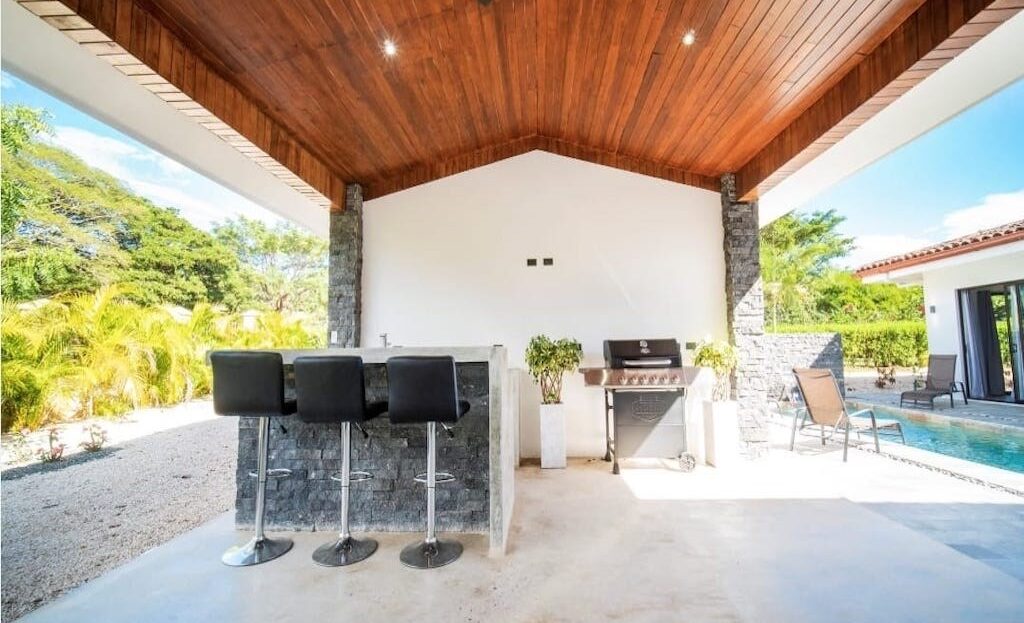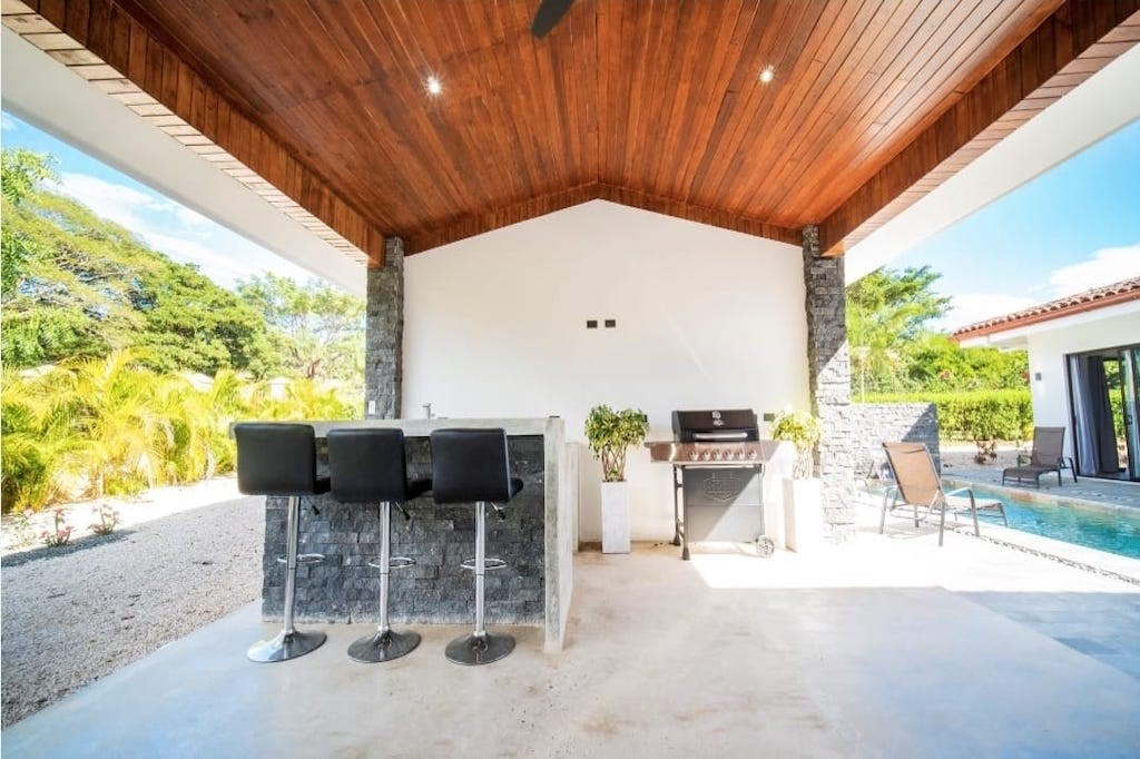 Casa Ma Waho is the newest luxury beach villa in Norma Tamarindo, a new suburb in town. This quality constructed 3 bedrooms, 3 bathroom home is perfect for your vacation lifestyle, boasting views of tranquil nature, a refreshing pool, covered terrace, and rancho with a BBQ area. All living spaces are centered around these areas, inviting you to live outdoors with all the comforts of home. This is why you live in Costa Rica! All the bedrooms are set viewing the pool and have en suite bathrooms, which is great for rentals. This spacious 220 square meter home is set on a large lot of over 1,000 square meters (1/4 acre) – big enough to add a casita or extra bedrooms.