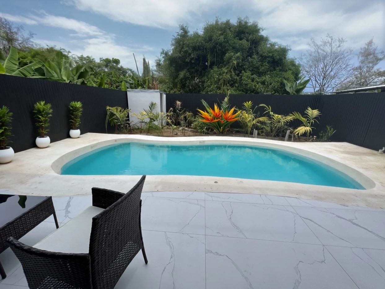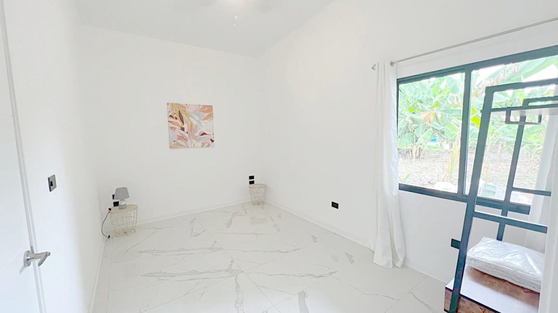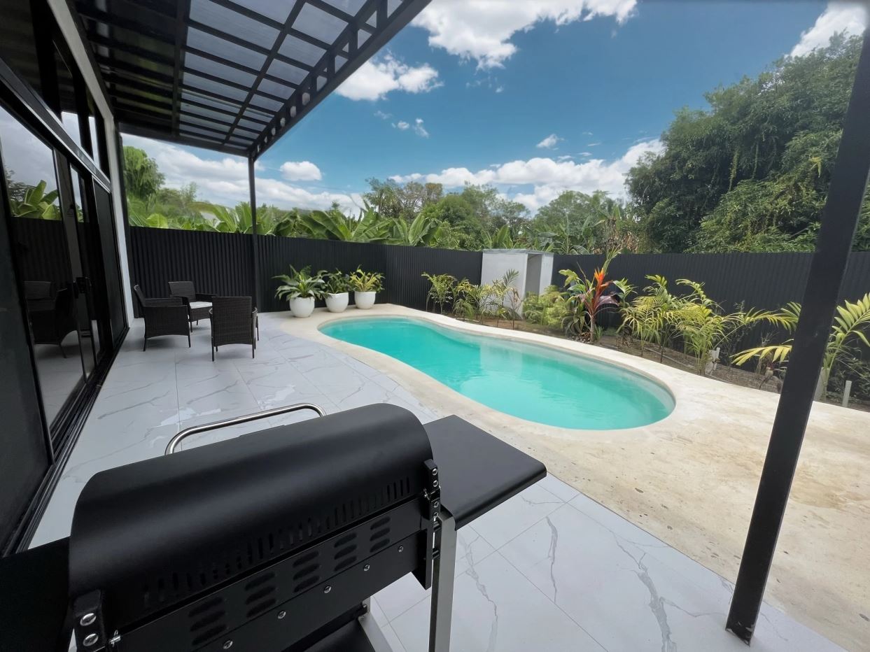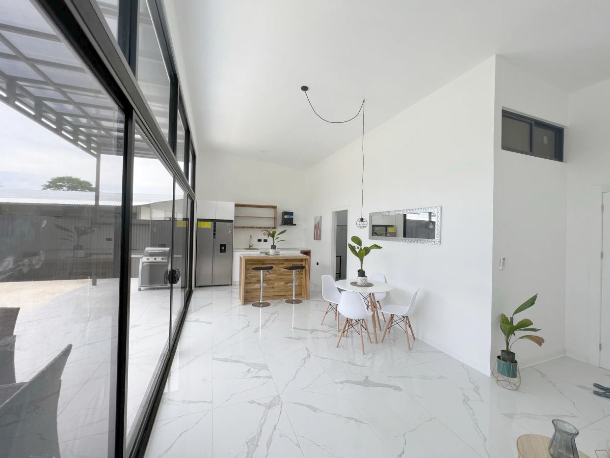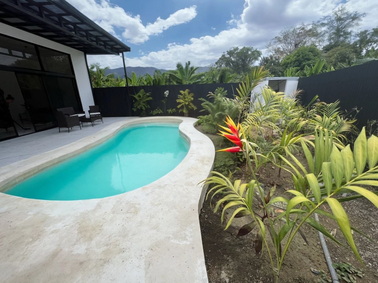The villa features three spacious bedrooms and three luxurious bathrooms, each elegantly finished with designer tiles. The open-plan living areas are designed to maximize natural light, creating a bright and welcoming atmosphere. Large windows throughout the home offer views of the tropical garden and the impressive 7 x 3-meter designer pool, seamlessly blending the indoor and outdoor living spaces for a true Costa Rican lifestyle.