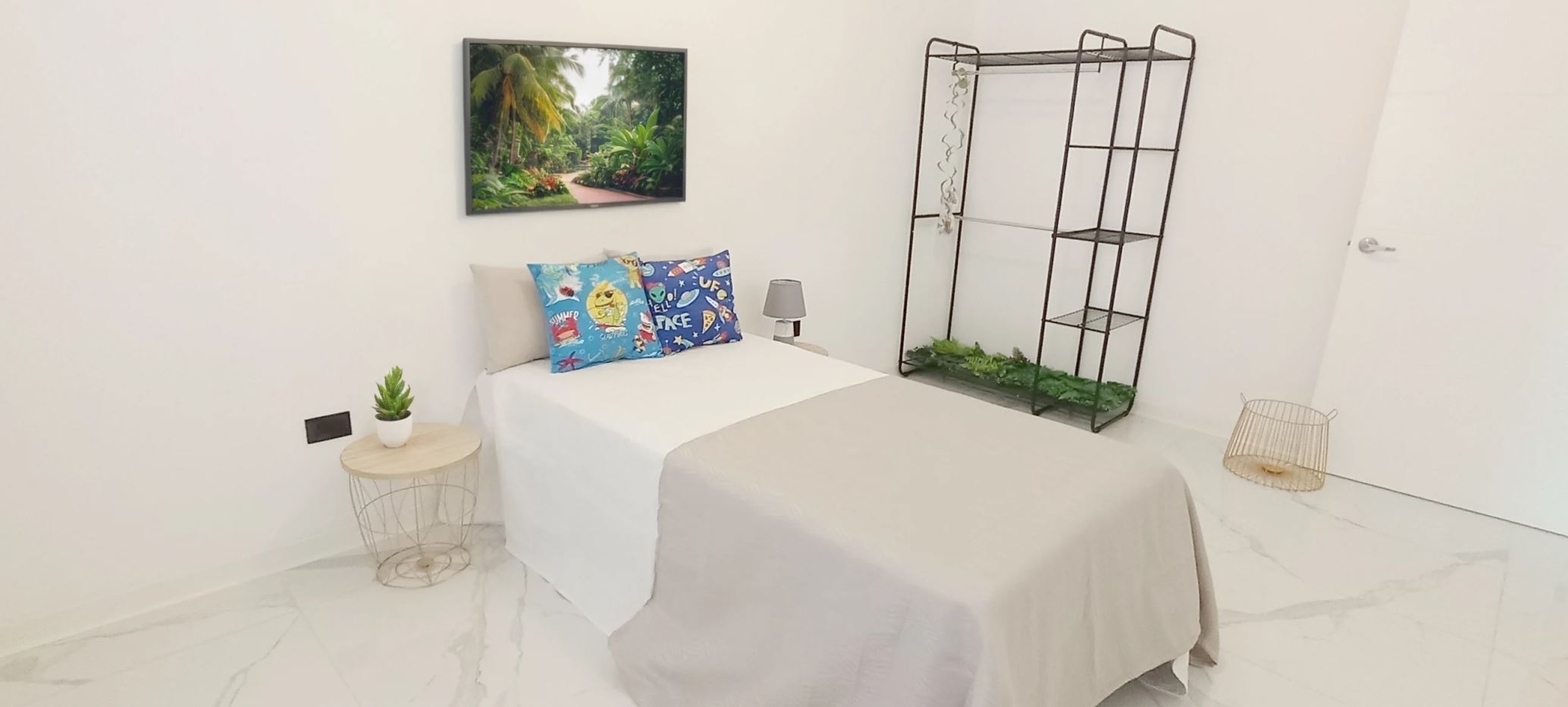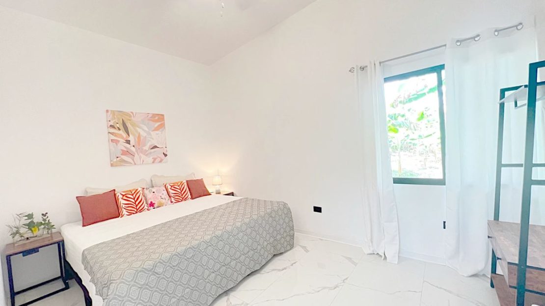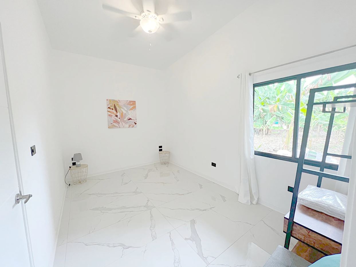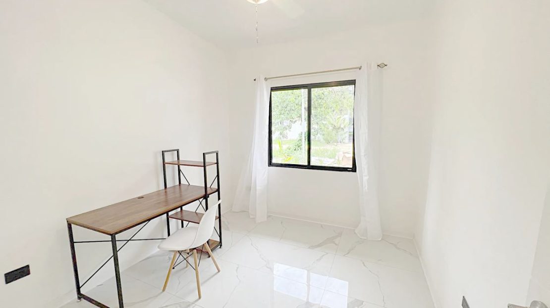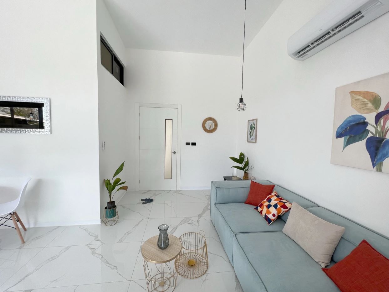 The villa features three spacious bedrooms and three luxurious bathrooms, each elegantly finished with designer tiles. The open-plan living areas are designed to maximize natural light, creating a bright and welcoming atmosphere. Large windows throughout the home offer views of the tropical garden and the impressive 7 x 3-meter designer pool, seamlessly blending the indoor and outdoor living spaces for a true Costa Rican lifestyle.