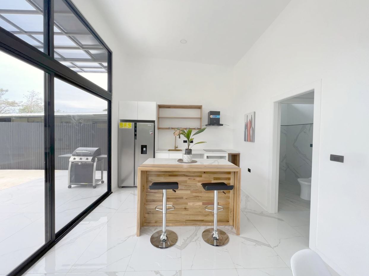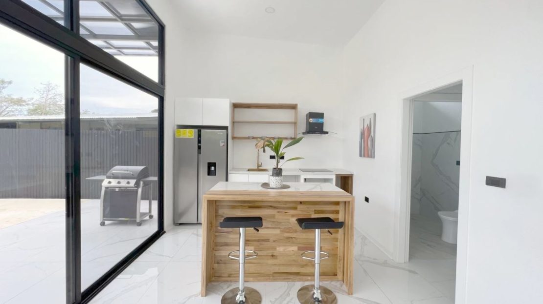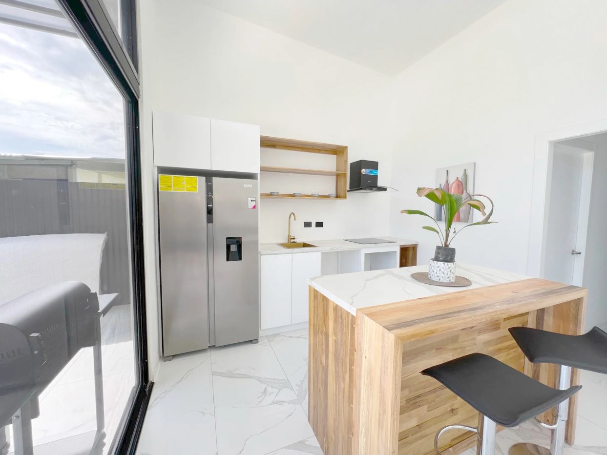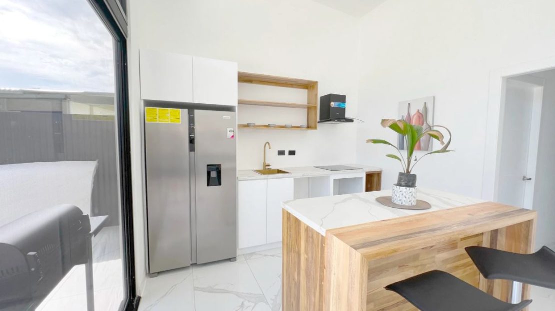 At the heart of Seeside Villa is its stunning designer pool, perfect for relaxation or entertaining guests. The pool area is complemented by a covered barbecue space, ideal for enjoying meals and drinks in the warm tropical climate. The villa’s thoughtful layout prioritizes privacy and functionality, with every space crafted to enhance the living experience.