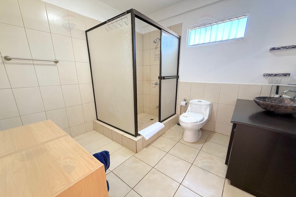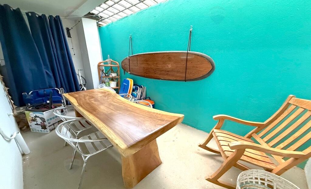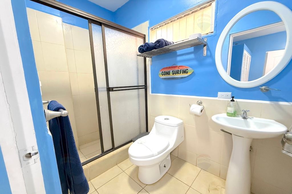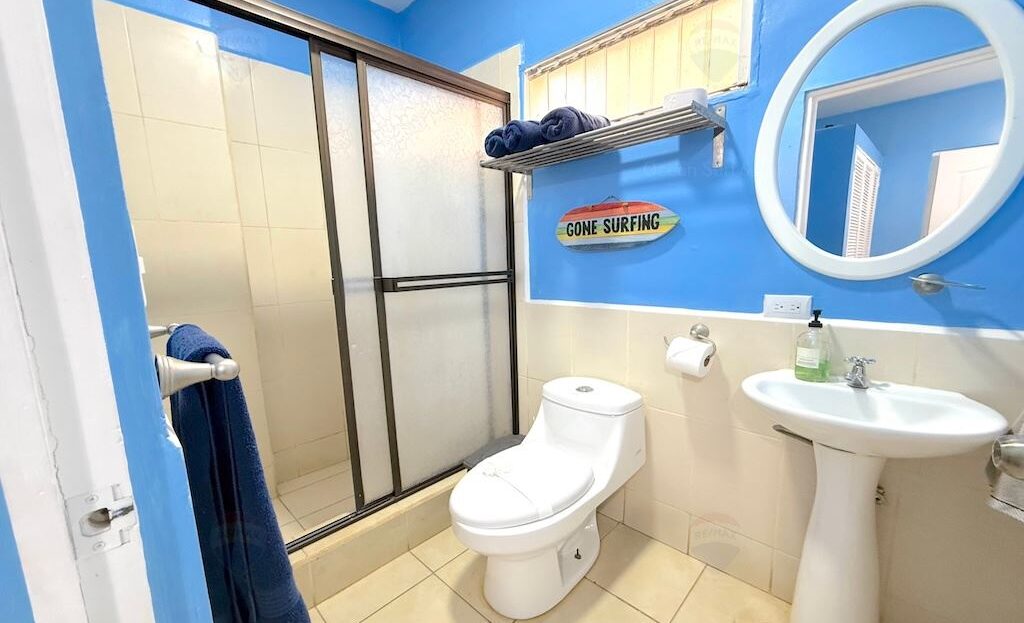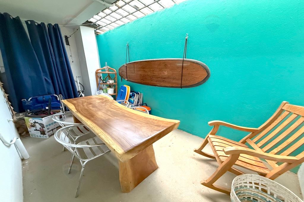 The master bedroom is located on the 3rd floor and has a king-size bed, A/C, ceiling fan, private bath, and balcony. The 2 remaining bedrooms are on the second floor – one with a double size bed, a balcony, and the other one with bunk beds. Both with A/C, ceiling fan, and private bath. The owner added a water tank behind the unit for constant water pressure and to make sure there’s never a lack of water in the unit, even with 8 people using the 3.5 bathrooms full time.