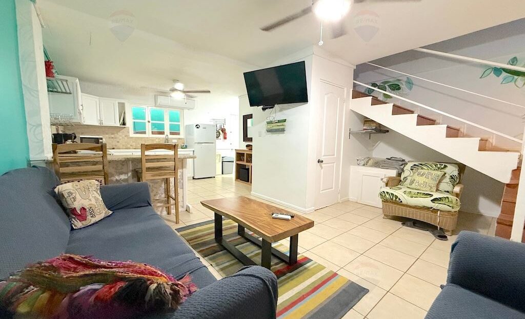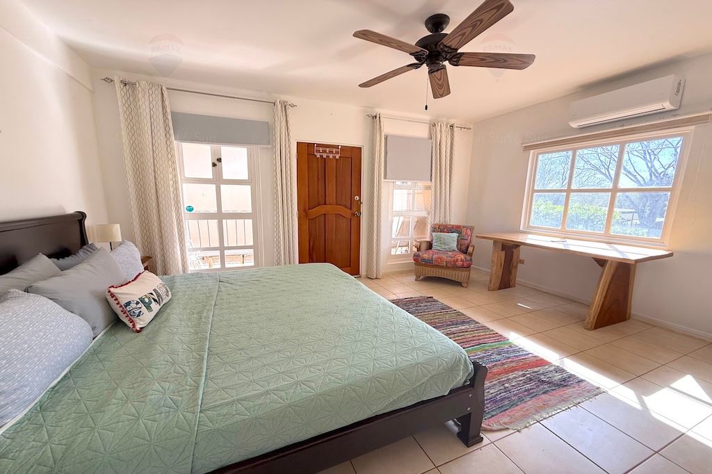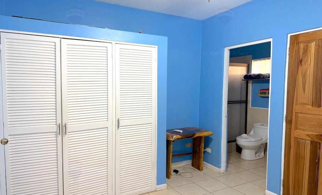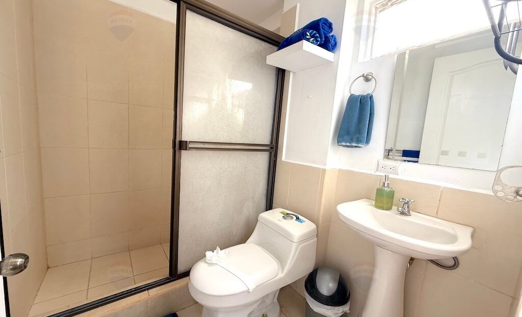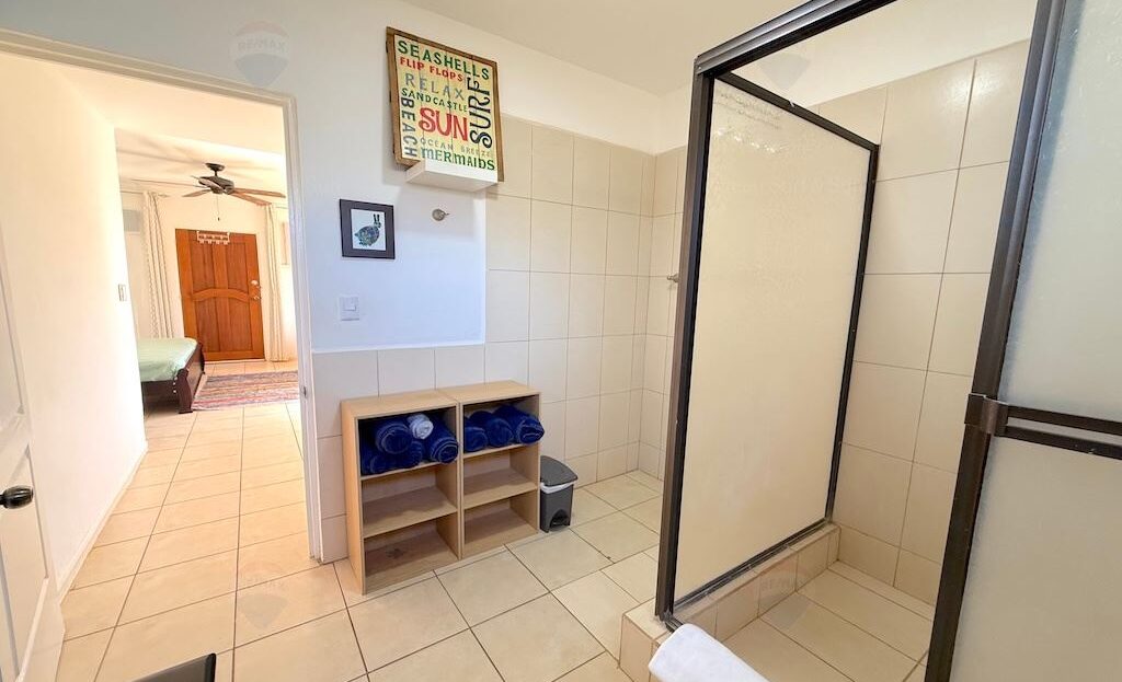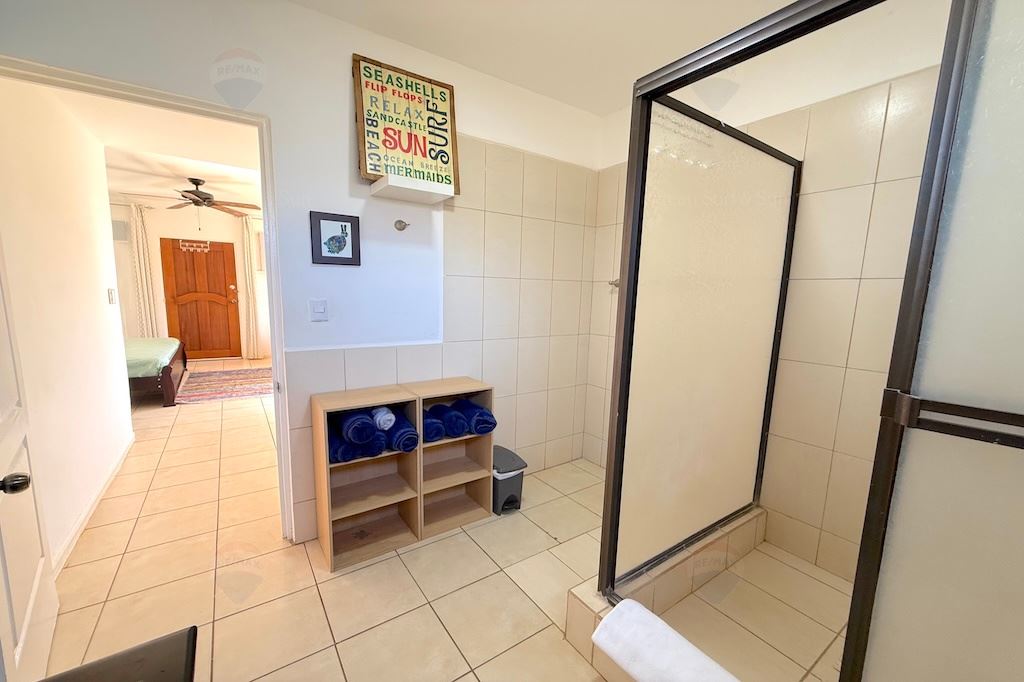The master bedroom is located on the 3rd floor and has a king-size bed, A/C, ceiling fan, private bath, and balcony. The 2 remaining bedrooms are on the second floor – one with a double size bed, a balcony, and the other one with bunk beds. Both with A/C, ceiling fan, and private bath. The owner added a water tank behind the unit for constant water pressure and to make sure there’s never a lack of water in the unit, even with 8 people using the 3.5 bathrooms full time.