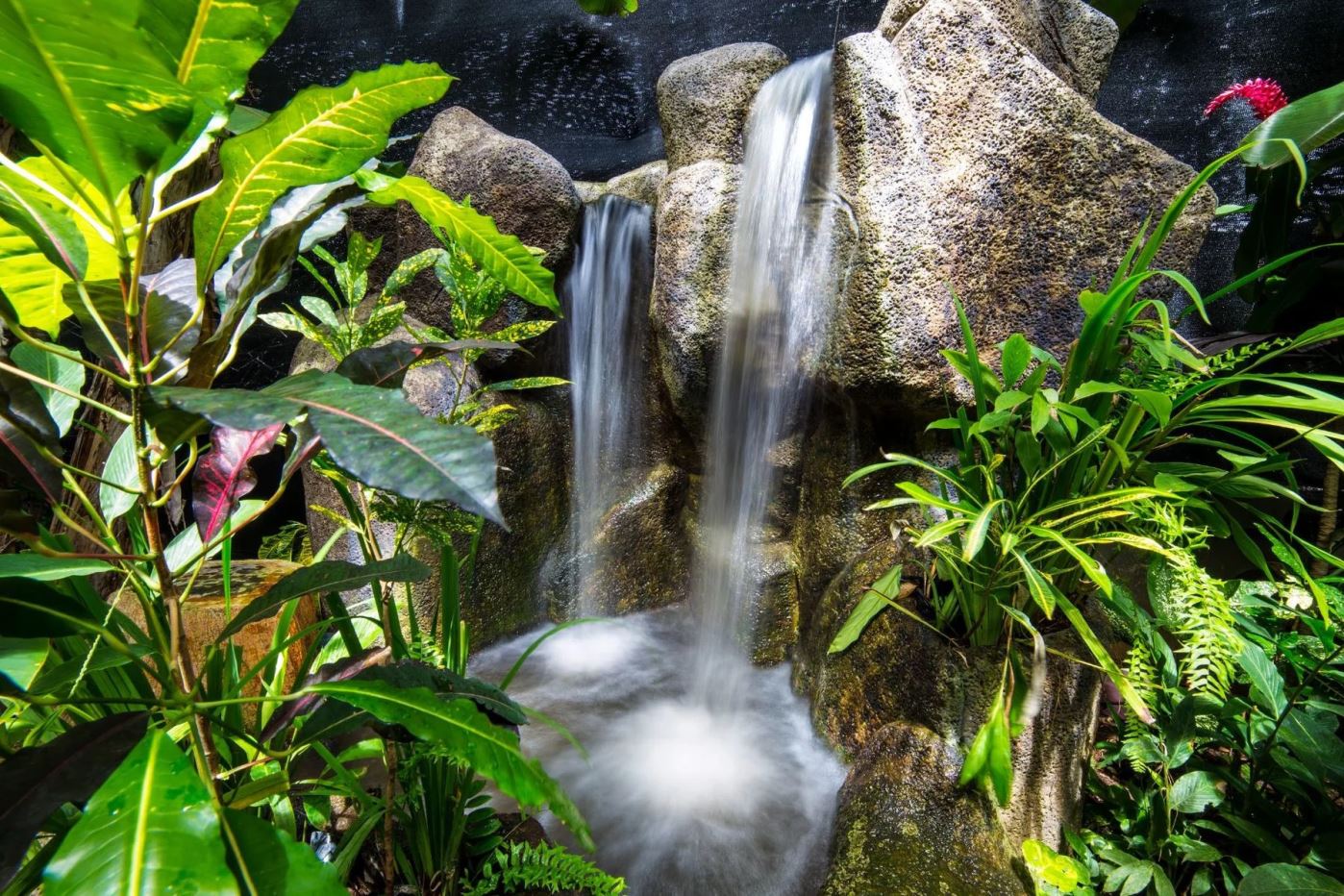 Situated on one of Manuel Antonio’s highest points, the property benefits from abundant light and refreshing breezes year-round. Its prime location allows guests easy access to local amenities, restaurants, and services, striking a perfect balance between privacy and convenience. Upon entering the gates, visitors are enveloped in a tranquil, zen-like atmosphere created by the meticulously maintained gardens, pool, and rancho. The grounds feature two custom-built waterfall features, a variety of exotic tropical flowers, and ample green space that immediately invites relaxation. Guests are often delighted by the frequent visits of scarlet macaws and monkeys.