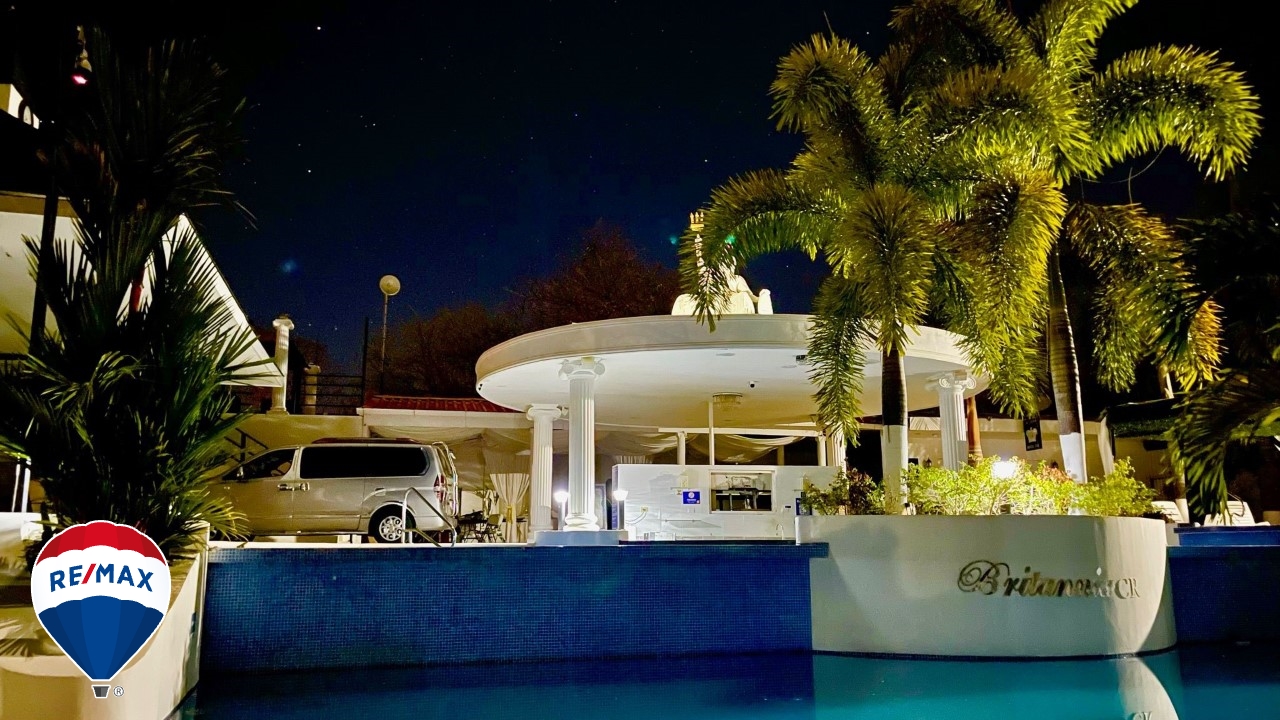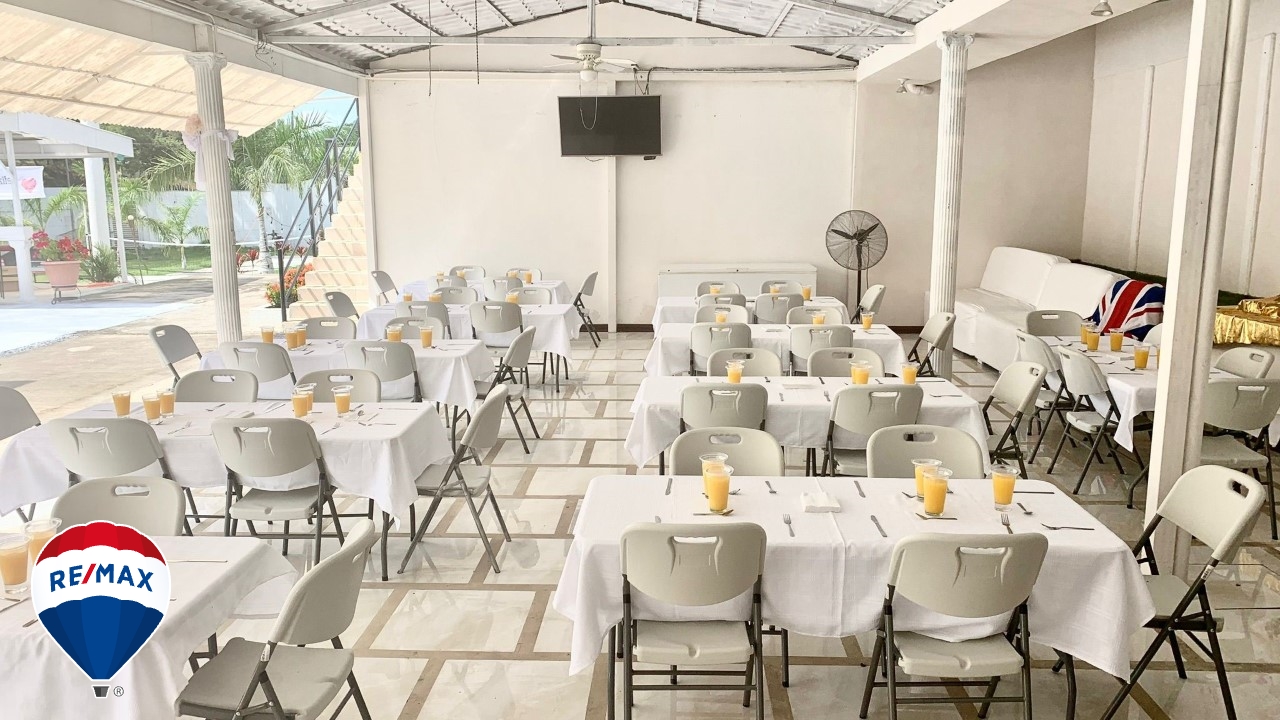 Adicionalmente, contamos con una discoteca con mini escenario, una oficina con aire acondicionado, para administrar eventos al aire libre, el salón de eventos está totalmente equipado, mientras que el área de piscinas ofrece dos opciones: una piscina con aqua bar y asientos de cuarzo y granito, con una profundidad de 1.25m y efectos de propulsión; y una segunda piscina de 1.25m a 2m de profundidad. Ambos espacios se complementan con un bar completamente equipado con cámaras de frío.