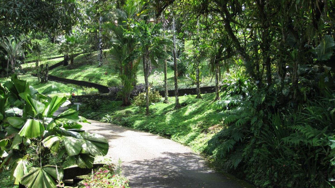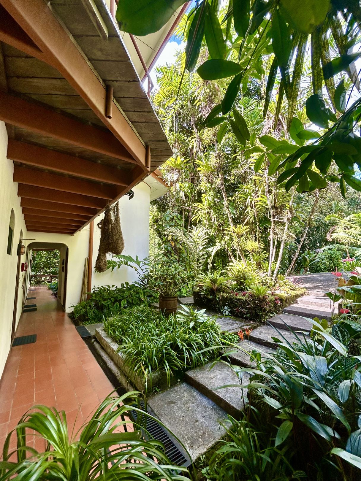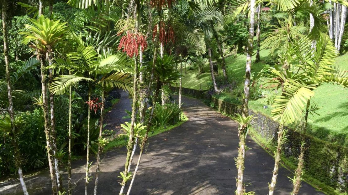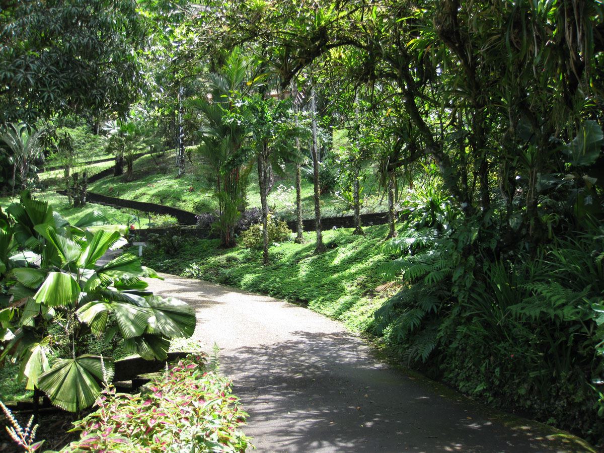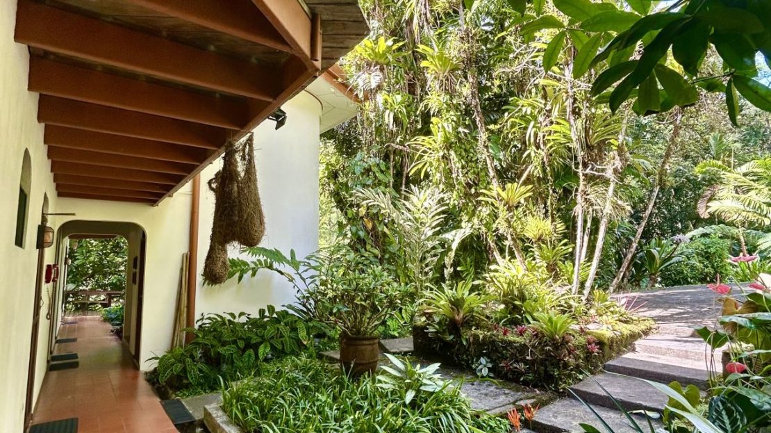 Surrounded by lush tropical gardens, the property feels like a private natural reserve where nature and hospitality exist in perfect harmony. Mature rainforest surrounds the estate, with approximately three acres of preserved forest featuring tranquil nature trails that invite guests to explore the landscape at their own pace. Winding pathways lead through beautifully maintained gardens and dedicated bird-feeding areas, offering quiet moments to observe the remarkable biodiversity that thrives throughout the property. Nearly half of the estate is devoted to these peaceful rainforest trails and natural spaces, creating an immersive environment where guests can connect with the beauty and serenity of the surrounding landscape.