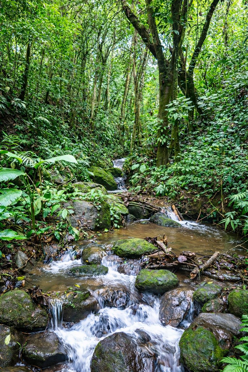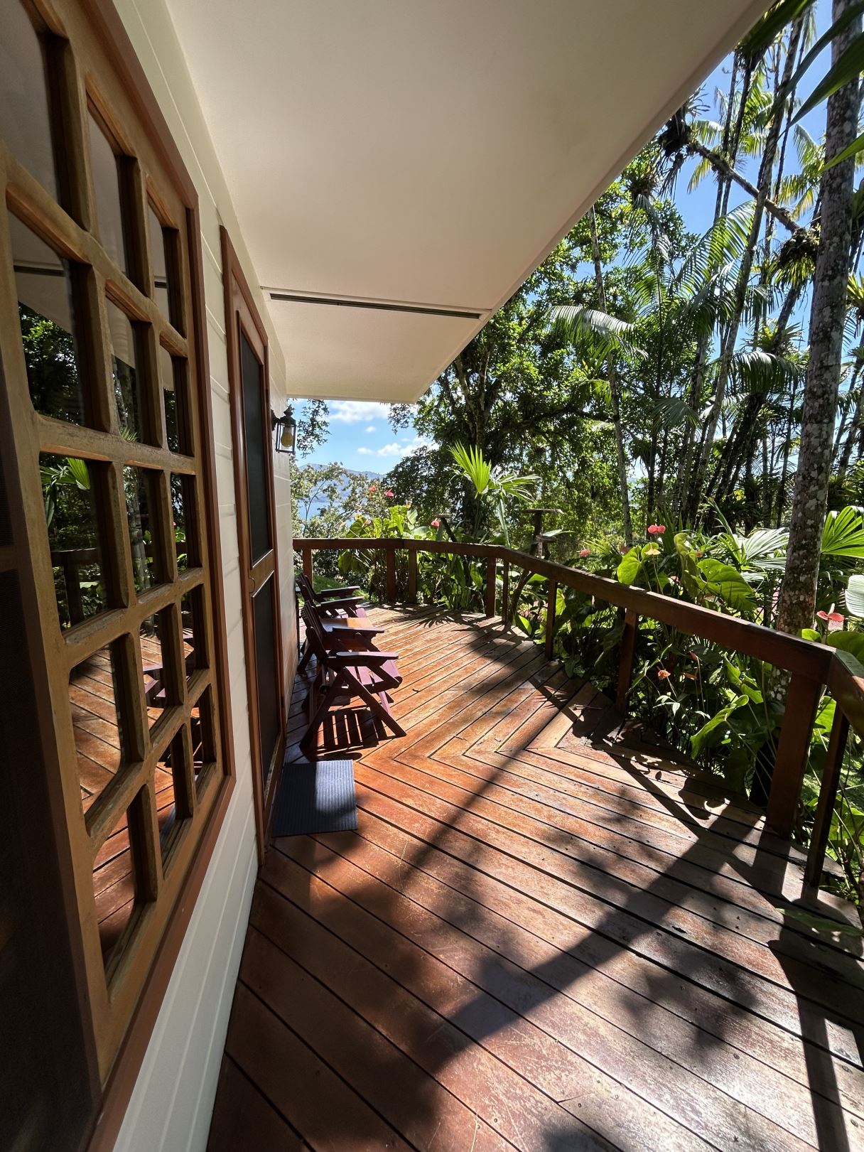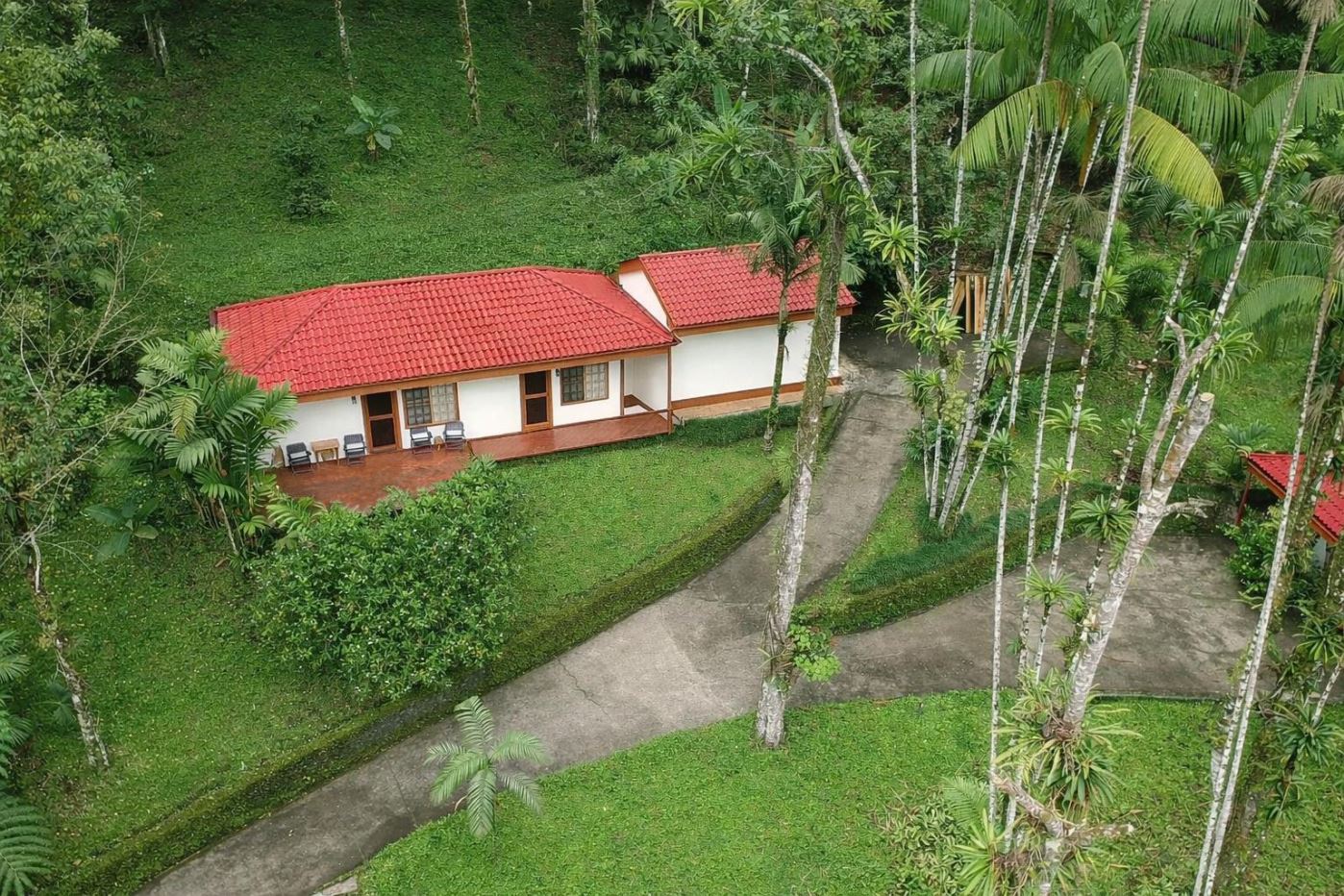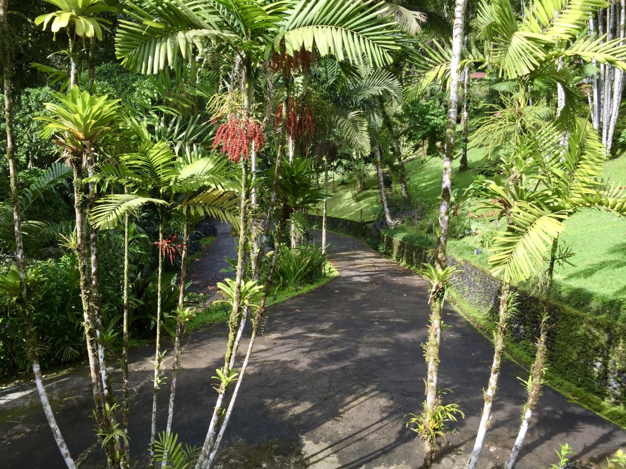 Surrounded by lush tropical gardens, the property feels like a private natural reserve where nature and hospitality exist in perfect harmony. Mature rainforest surrounds the estate, with approximately three acres of preserved forest featuring tranquil nature trails that invite guests to explore the landscape at their own pace. Winding pathways lead through beautifully maintained gardens and dedicated bird-feeding areas, offering quiet moments to observe the remarkable biodiversity that thrives throughout the property. Nearly half of the estate is devoted to these peaceful rainforest trails and natural spaces, creating an immersive environment where guests can connect with the beauty and serenity of the surrounding landscape.