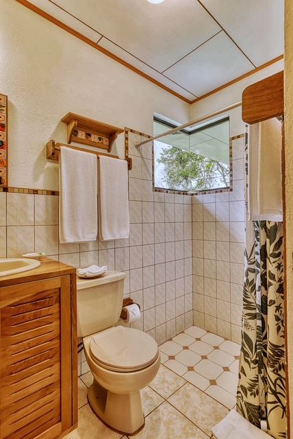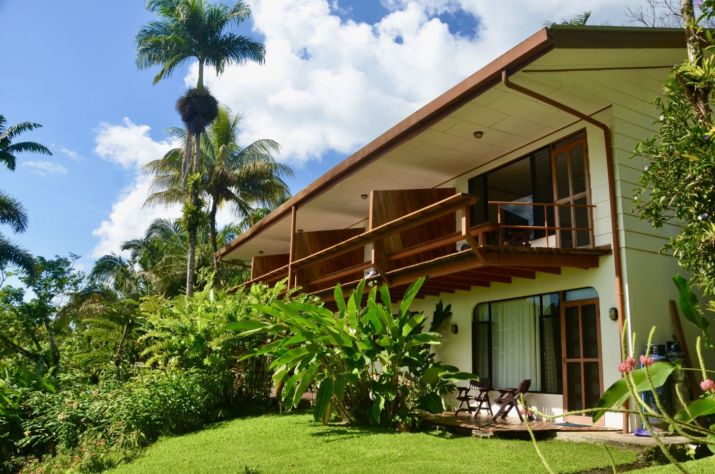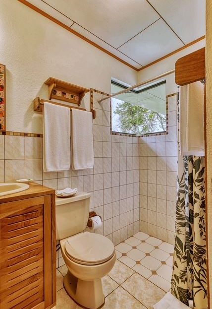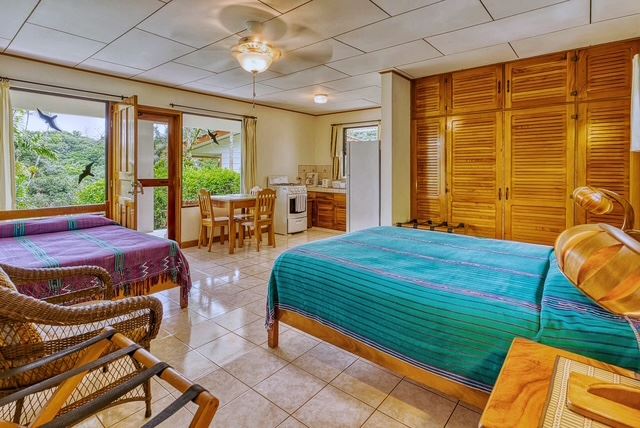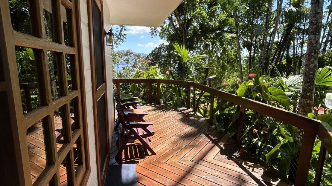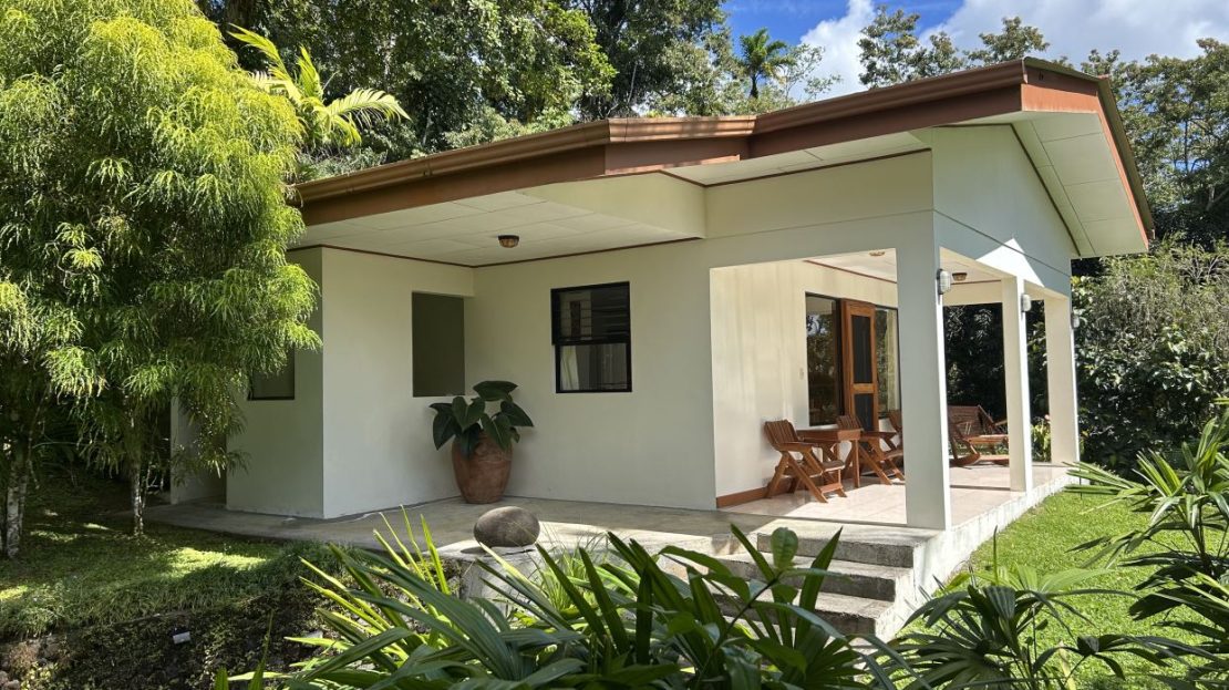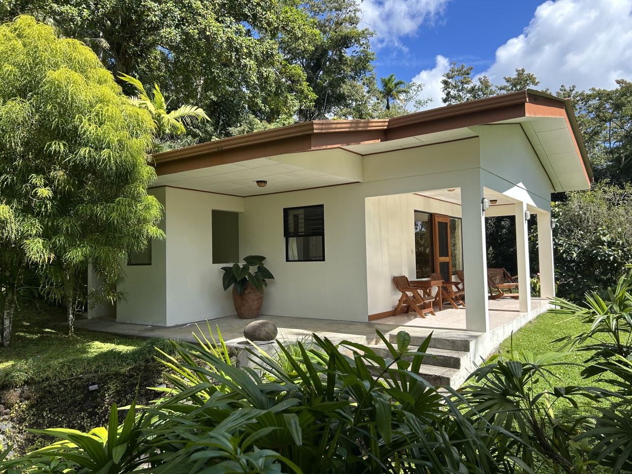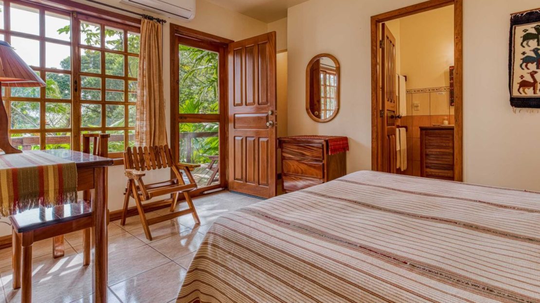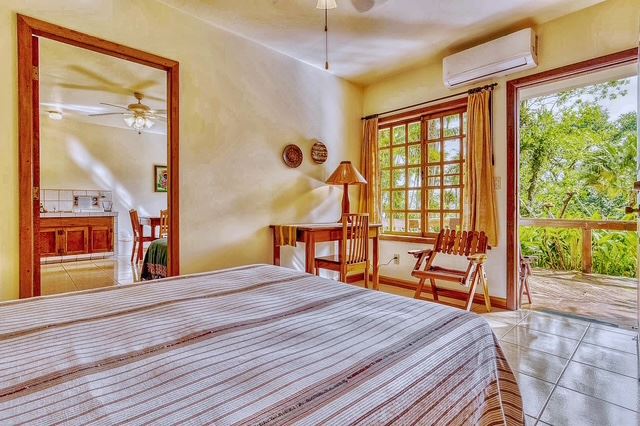 The largest of the private casistas is positioned at the highest point of the estate, enjoying an elevated setting with sweeping views across the gardens, surrounding countryside, and the tranquil waters of Lake Arenal. The casita features a generous living area and a spacious master suite with ensuite bathroom, complemented by an oversized covered deck that greatly expands the outdoor living space.
