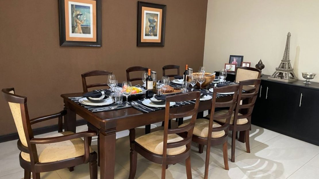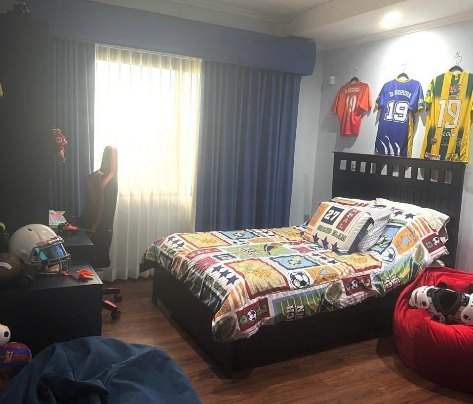 La casa cuenta con cuatro dormitorios muy espaciosos, cada uno con excelente iluminación natural y su propio baño completo, lo que la hace ideal para familias grandes o para recibir visitas con total comodidad. Las áreas de sala y comedor son amplias y acogedoras, perfectas para disfrutar de la vida diaria o para ocasiones especiales. Los techos altos y pasillos anchos aportan una sensación de apertura y fluidez en todos los espacios.