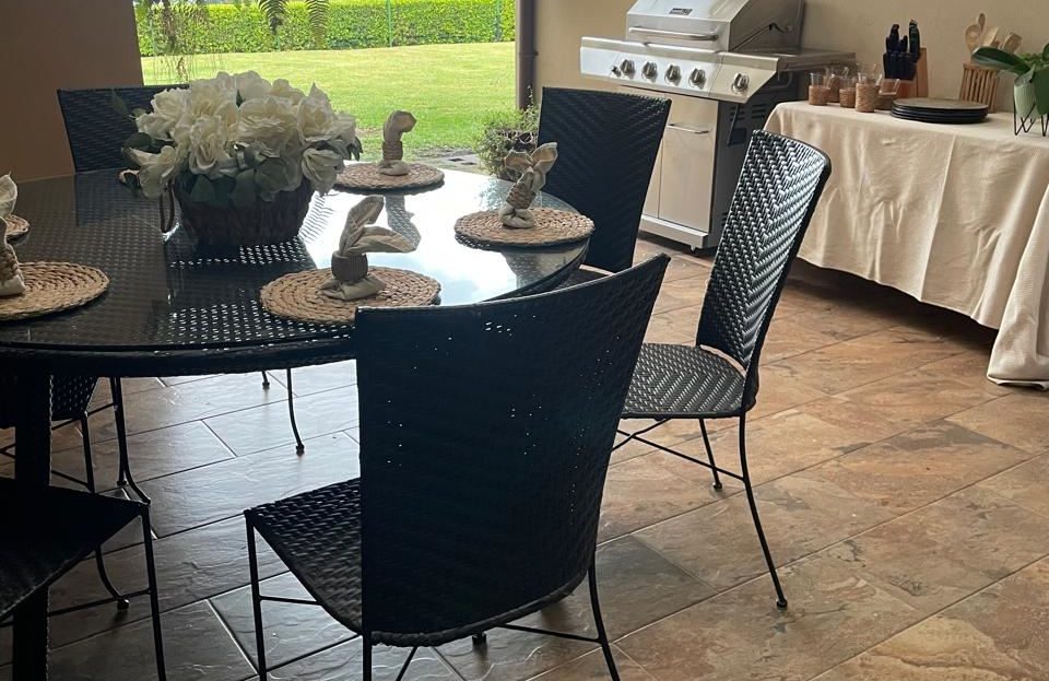 La cocina es amplia y funcional, con gran capacidad de almacenamiento y conexión directa con los espacios sociales interiores y exteriores. Ya sea para una cena íntima o para recibir invitados, esta casa lo tiene todo.