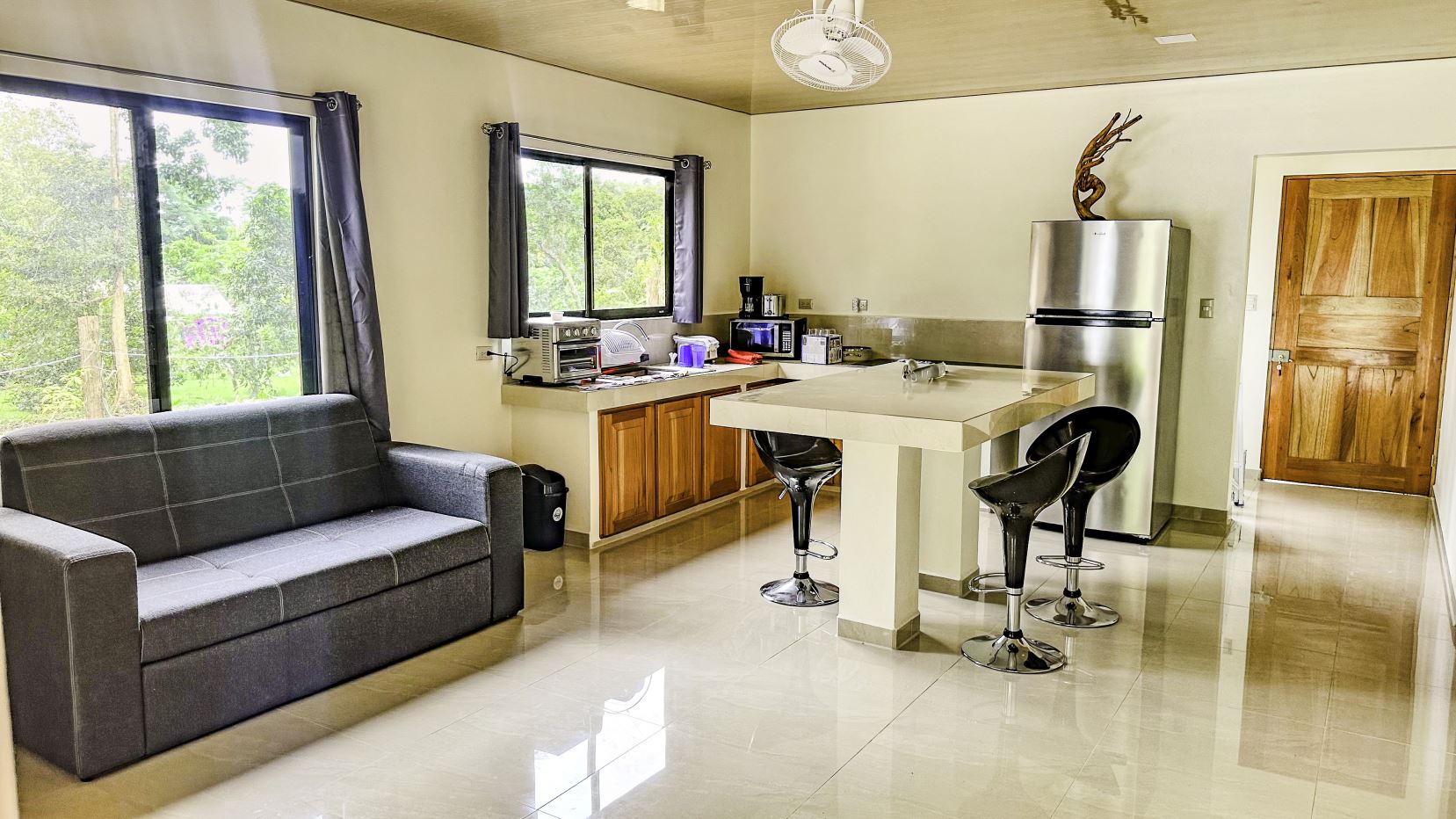 Rodeada de una multitud de árboles frutales—including rambután, bananos, mangos y más—tu nuevo hogar es un imán para la vibrante vida silvestre de Costa Rica. Disfruta de visitas diarias de aves exóticas y la encantadora vista de monos ardilla en peligro de extinción balanceándose entre los árboles cada noche.
