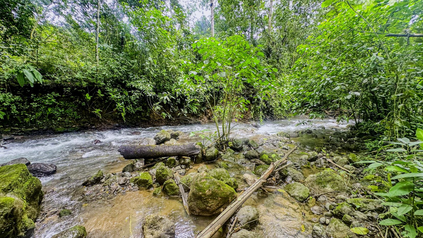 **Sinfonía de la naturaleza:** Deja que los sonidos relajantes de un río de agua dulce prístino, accesible directamente desde tu propiedad, sean la banda sonora de tu vida diaria. El murmullo suave del río complementa el susurro del follaje de la jungla y las melodías de la fauna local.